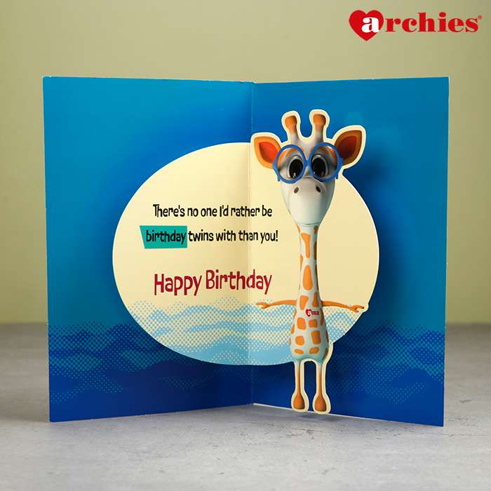 Archies AMA the Friendly Giraffe Birthday Card features a charming illustration of a giraffe named AMA exuding warmth and friendliness.