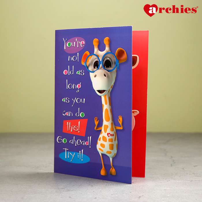 Archies AMA the Friendly Giraffe Birthday Card features a charming illustration of a giraffe named AMA exuding warmth and friendliness.