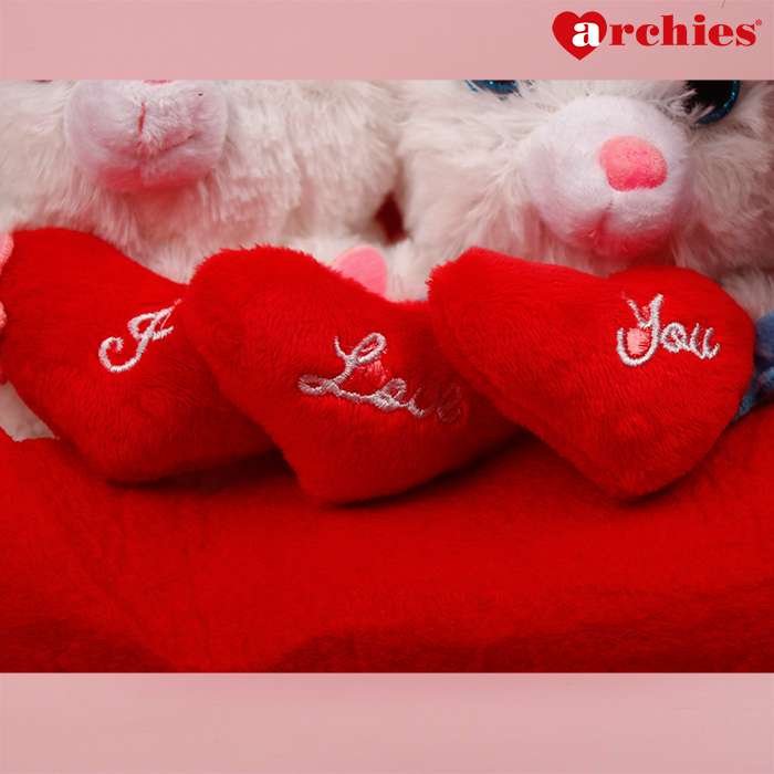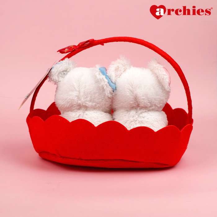 Introducing the Archies Couple Mouse in Red Basket Soft Toy- a delightful addition to your collection.