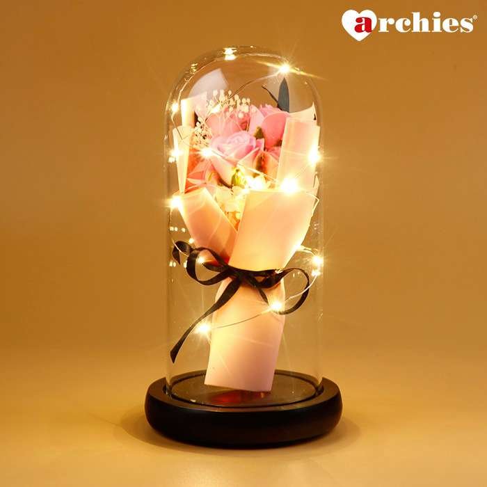 Archies pink rose bouquet light-up showpiece is a romantic delight for rose day and valentine's day.