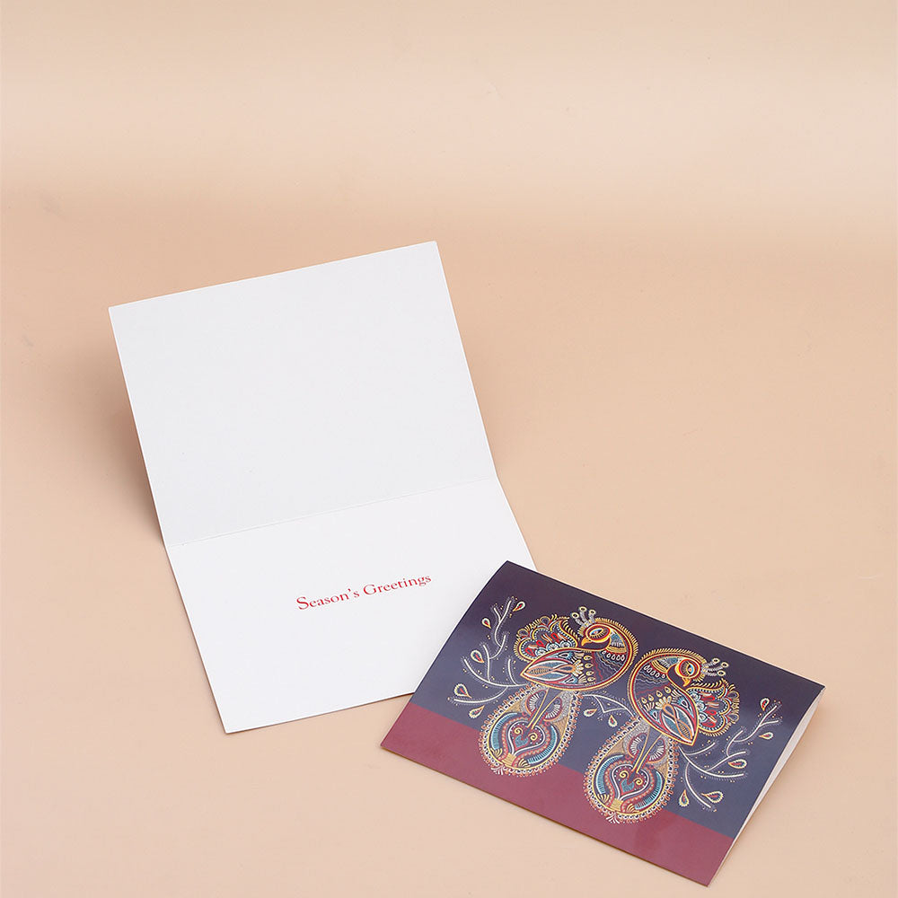 Celebrate Festivals With our beautiful Seasons Greeting Card. This elegant card is perfect for personal messages and wishes. With a beautiful design printed in front, and smooth blank pages inside for you to write heartwarming messages. Its vibrant design and high-quality paper make it a delightful choice for sending warm festive greetings. Whether you are giving it to friends or family, it will surely brighten their day.