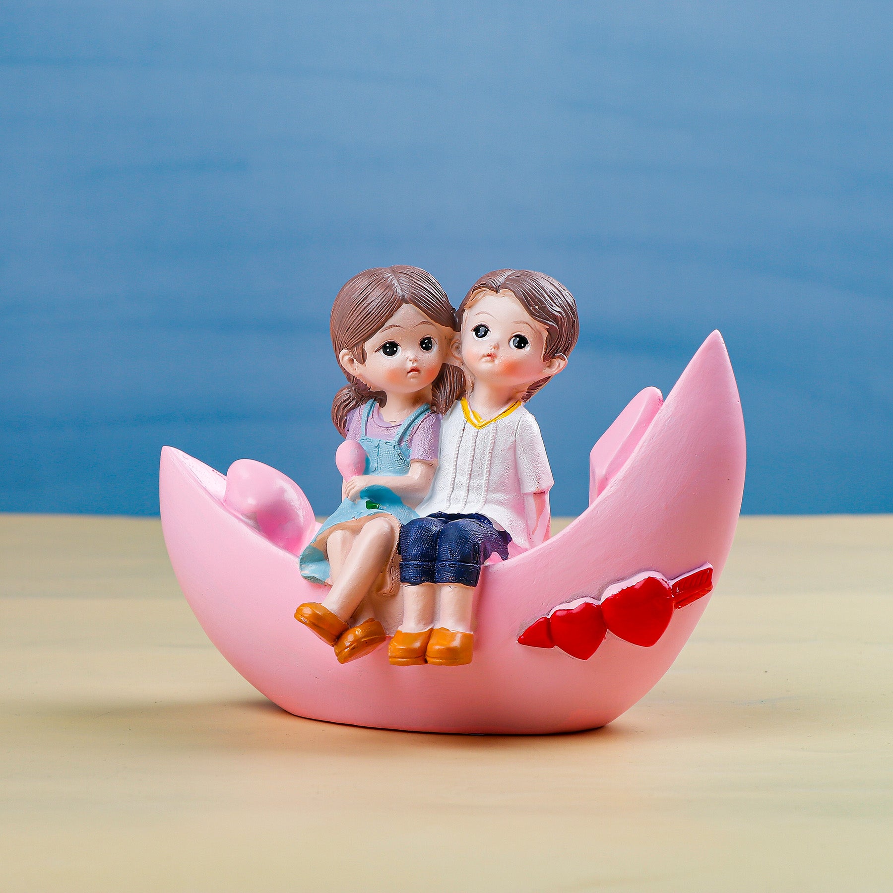 Blooming love in Boat Couple Showpiece