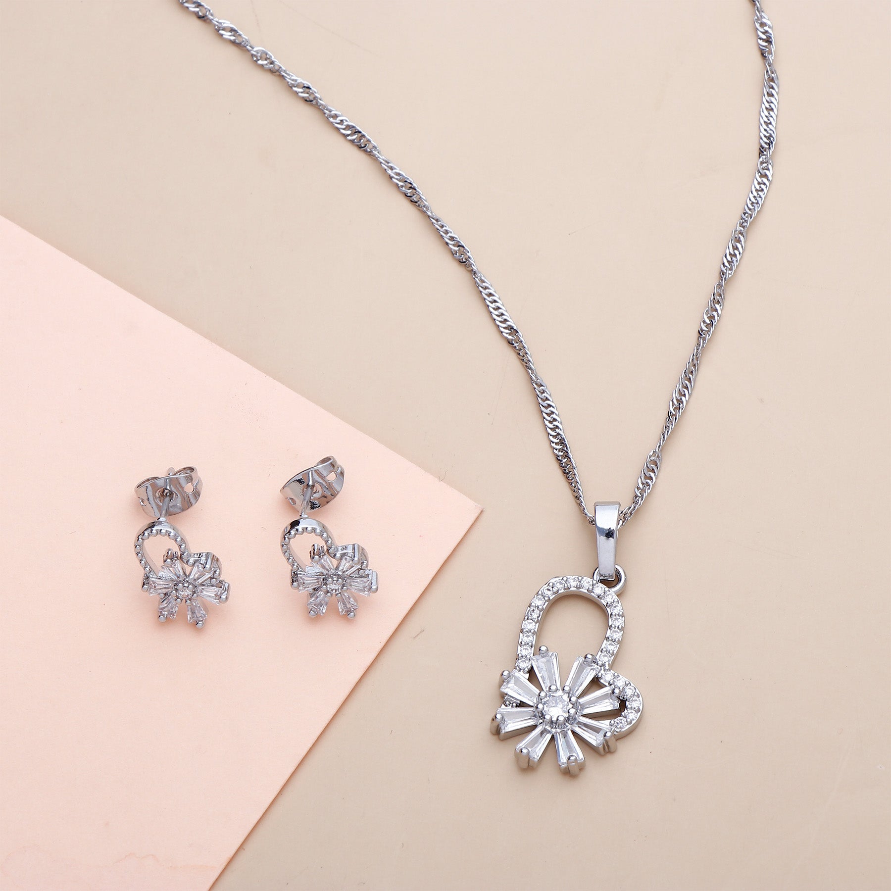Add a touch of elegance to your lifestyle with this stunning earring and pendant set. Expertly crafted to enhance your everyday look or complement special occasion wear, this set blends classic charm with modern finesse. The intricate design of the pendant is perfectly balanced by matching earrings that sparkle with every movement. Whether it's a gift for someone special or a personal indulgence, this jewellery set is sure to turn heads and capture hearts.