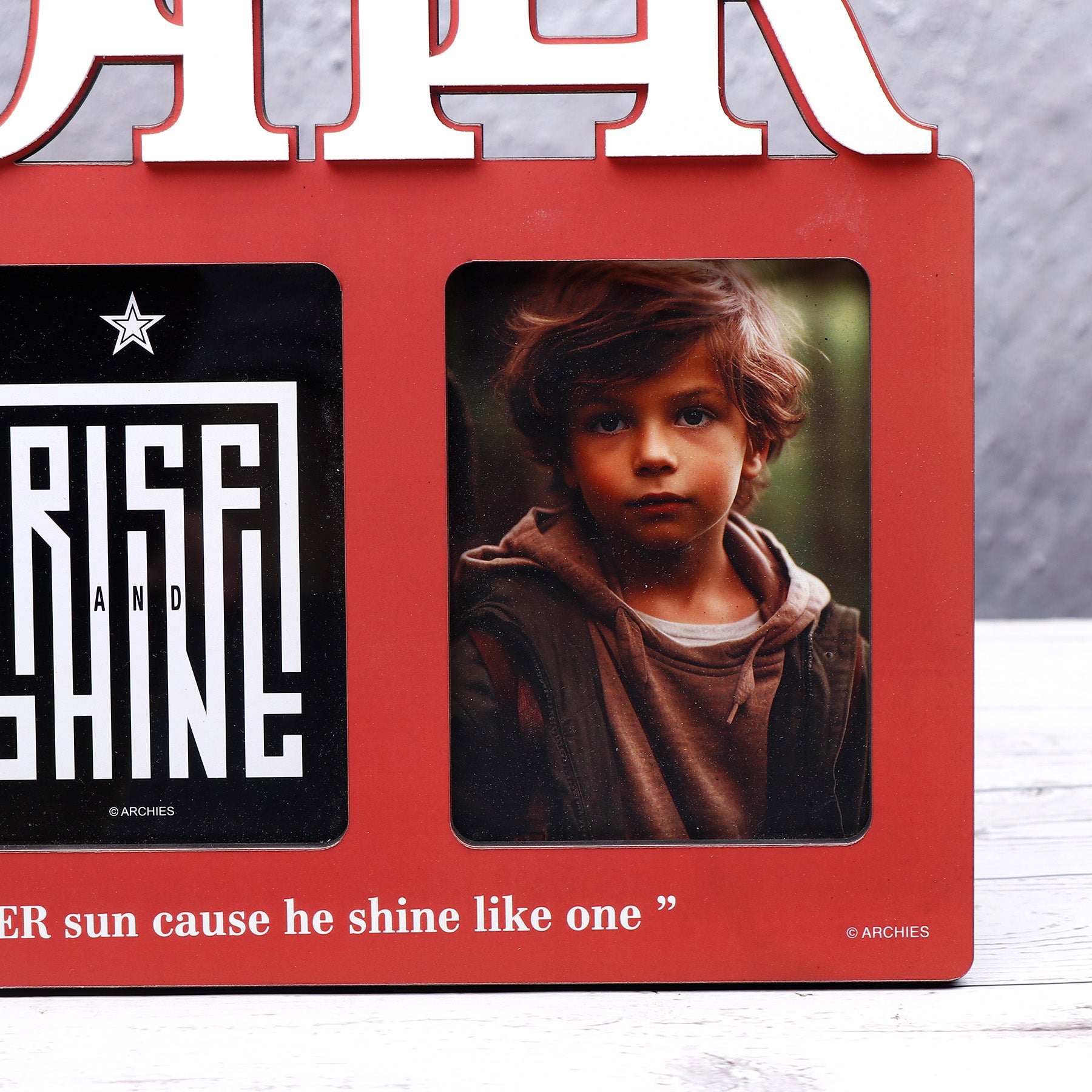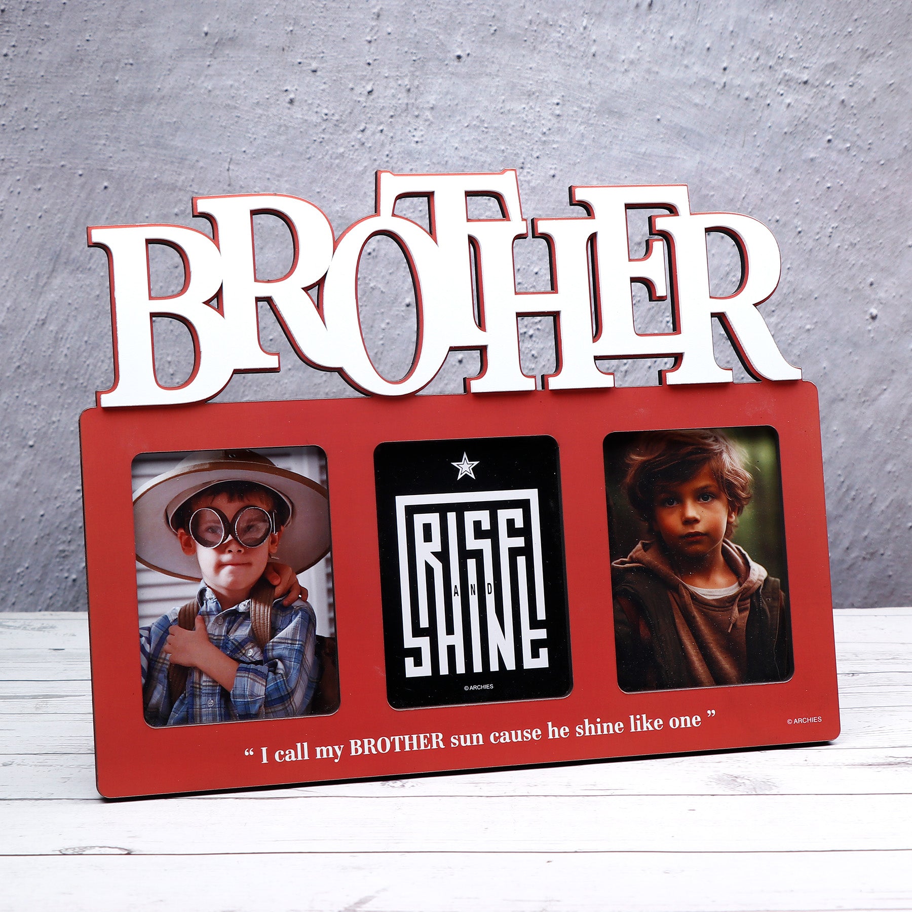 Celebrate your beautiful moments in style with this amazingly crafted wooden photoframe by Archies. Featuring three photo spaces to showcase cherished memories and an engraved heartfelt message, this frame brings warmth, emotion, and elegance to your decor. Whether it’s a gift for someone special or a keepsake for your own home, this frame is a perfect reminder that the best memories deserve a special place.