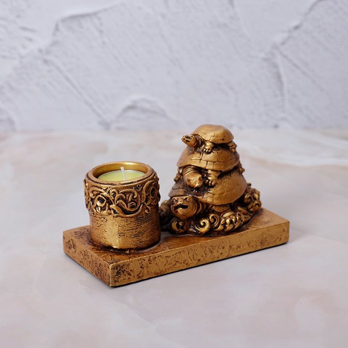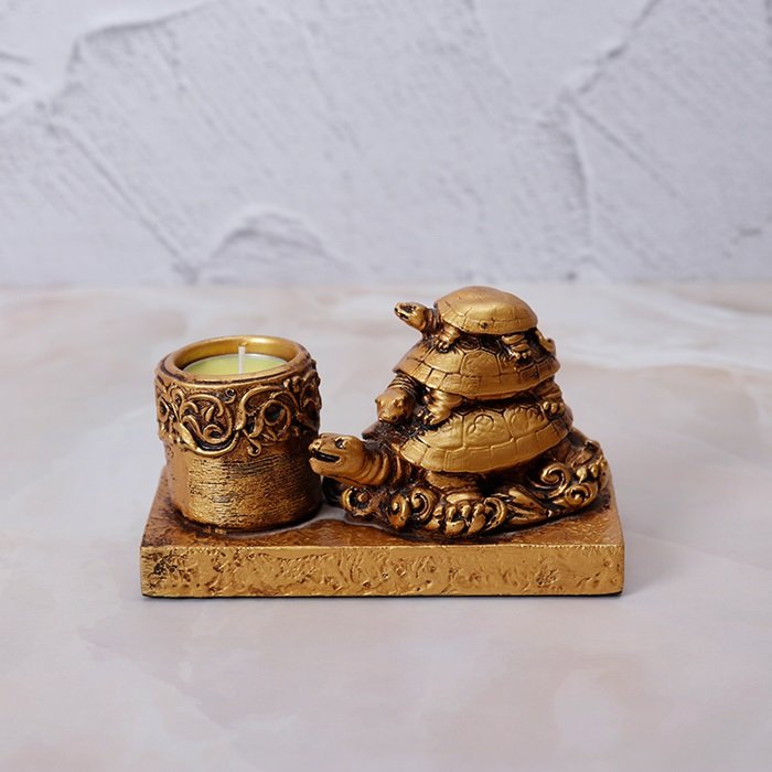 The beautiful design golden tortoise showpiece along with candle is a perfect sign of a positive energy and this is the best showpiece gift to give on any occasion and festival.