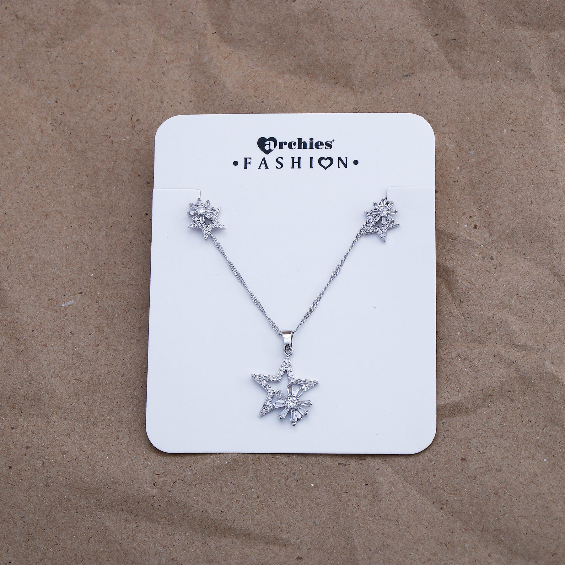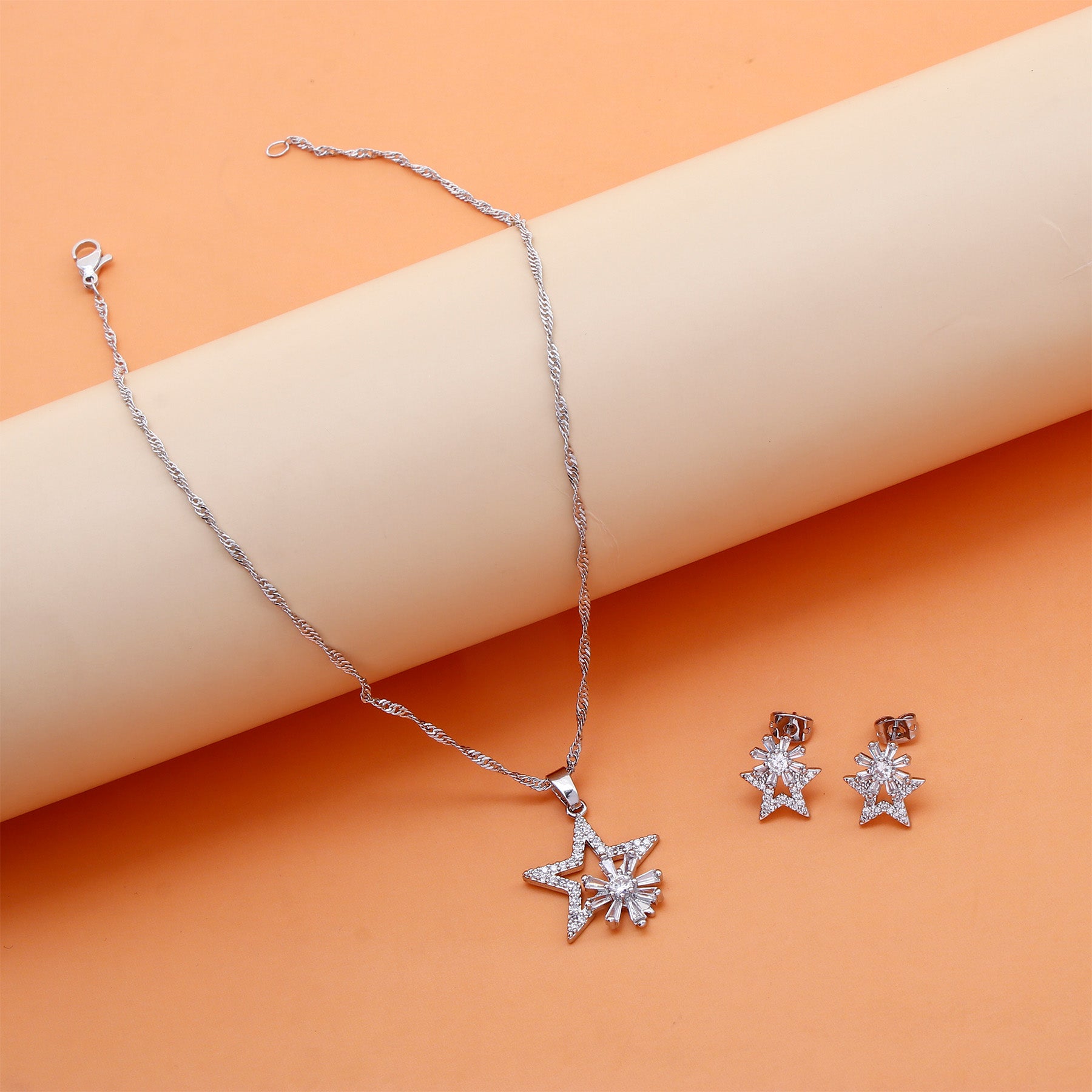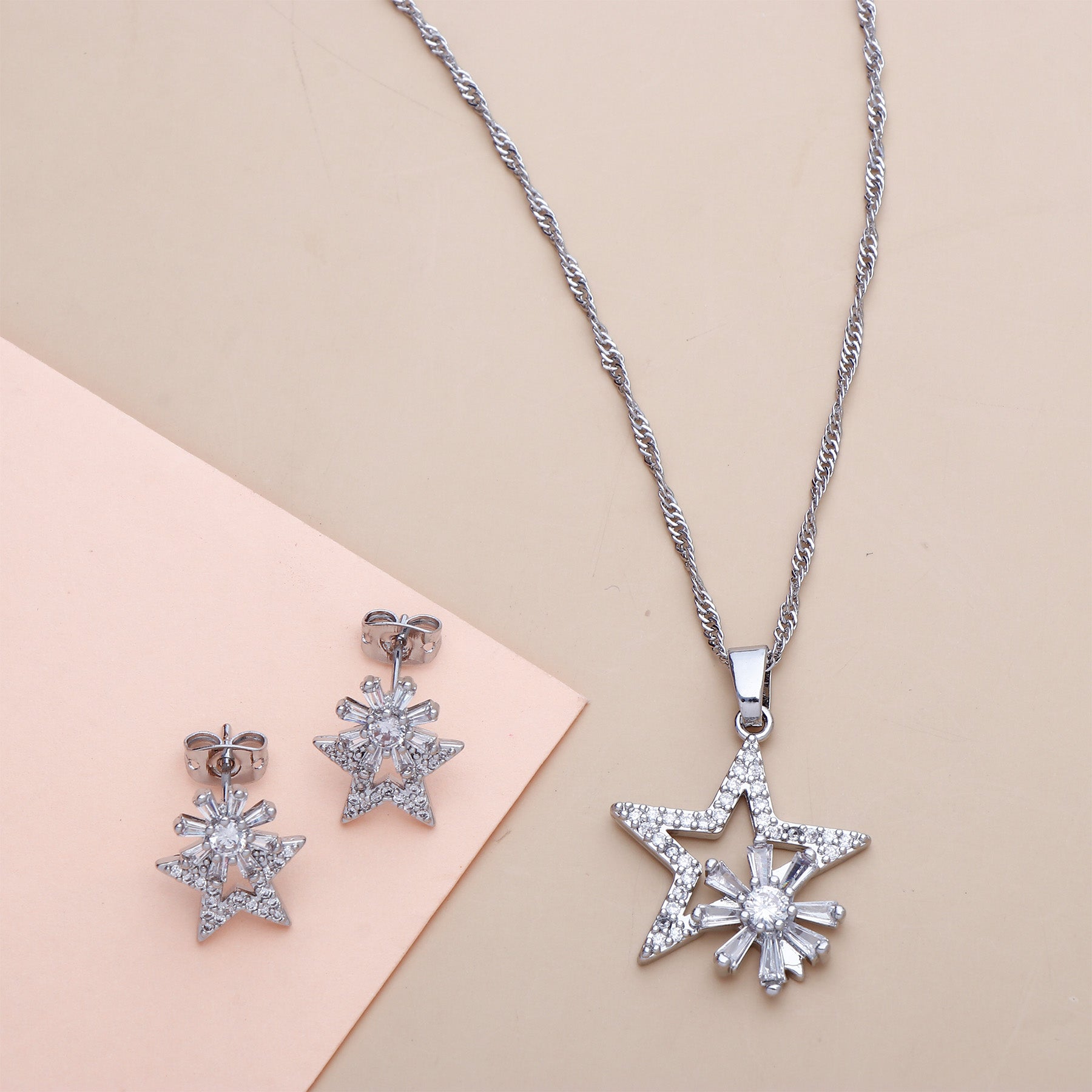Add a touch of elegance to your lifestyle with this stunning earring and pendant set. Expertly crafted to enhance your everyday look or complement special occasion wear, this set blends classic charm with modern finesse. The intricate design of the pendant is perfectly balanced by matching earrings that sparkle with every movement. Whether it's a gift for someone special or a personal indulgence, this jewellery set is sure to turn heads and capture hearts.