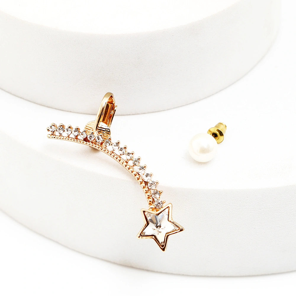 Elevate your style effortlessly with our stunning collection of ear cuffs that require absolutely no piercing, making them the perfect Valentine's gift for a girlfriend or Valentine's gift for a wife who loves fashionable accessories without commitment. These versatile ear cuffs feature innovative designs that simply clip or wrap around the ear cartilage, offering the edgy look of multiple piercings without any pain or permanent modifications. Our collection includes multiple trendy styles - a glamorous multi-chain design with a heart charm and crystal embellishments in a golden tone, an elegant silver wave cuff with sparkling crystals, a celestial starburst design studded with brilliant stones in gold, and a sophisticated pearl-adorned double-band cuff perfect for romantic occasions. Each piece is crafted with comfort and style in mind, featuring adjustable mechanisms that ensure a secure fit on various ear shapes and sizes. Perfect as Valentine's Day jewelry, a special gift for a girlfriend, jewellery gift ideas for her, anniversary gifts for her, a birthday gift for a wife, or trendy accessories for fashion-forward individuals, these ear cuffs allow you to experiment with bold jewelry trends without the commitment of piercings.