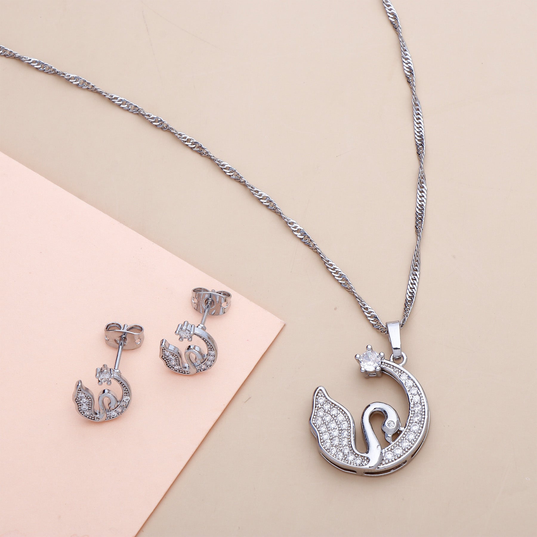 Celestial Swan Pendant with Earring Set