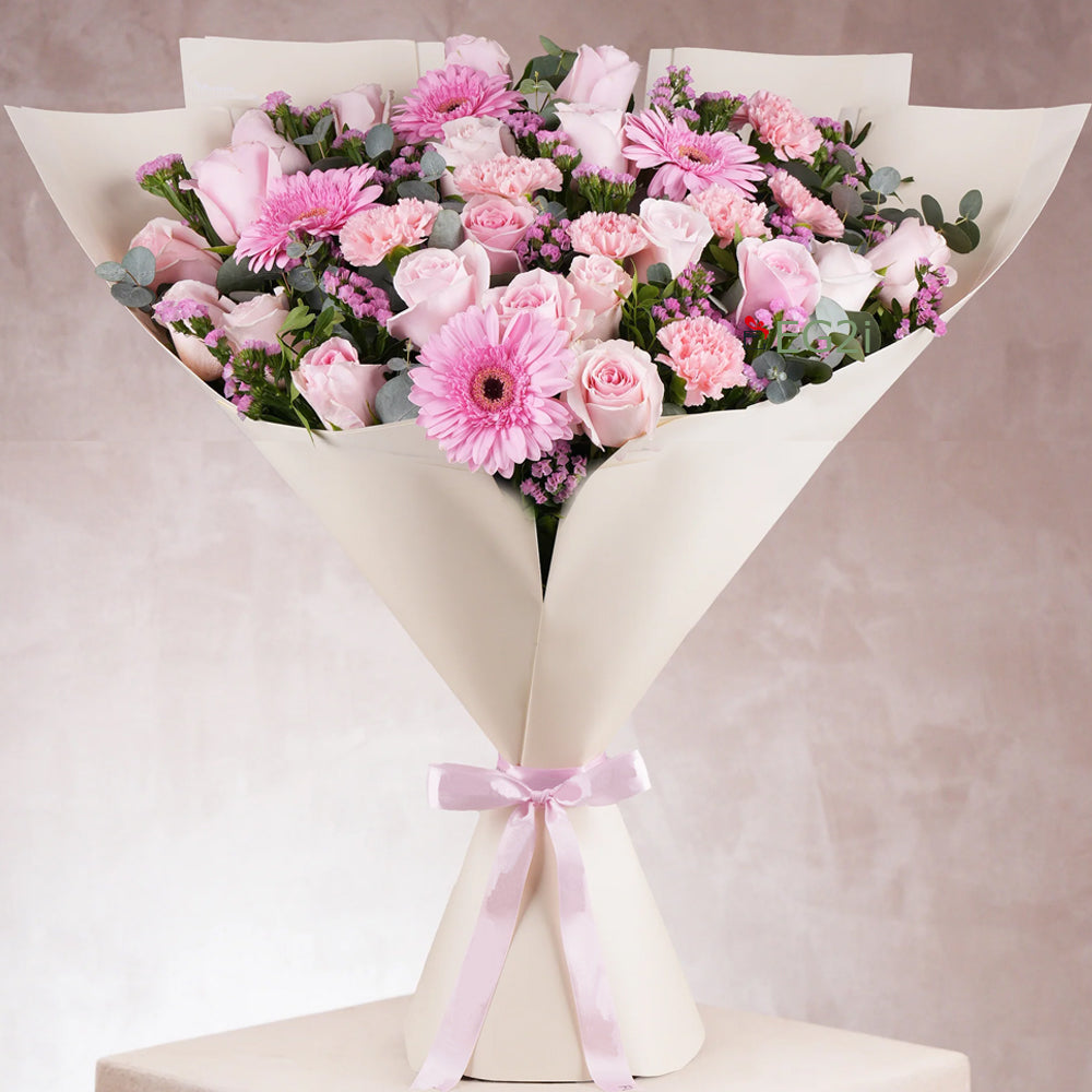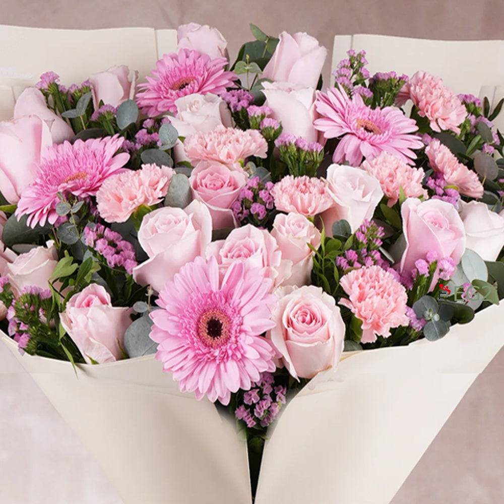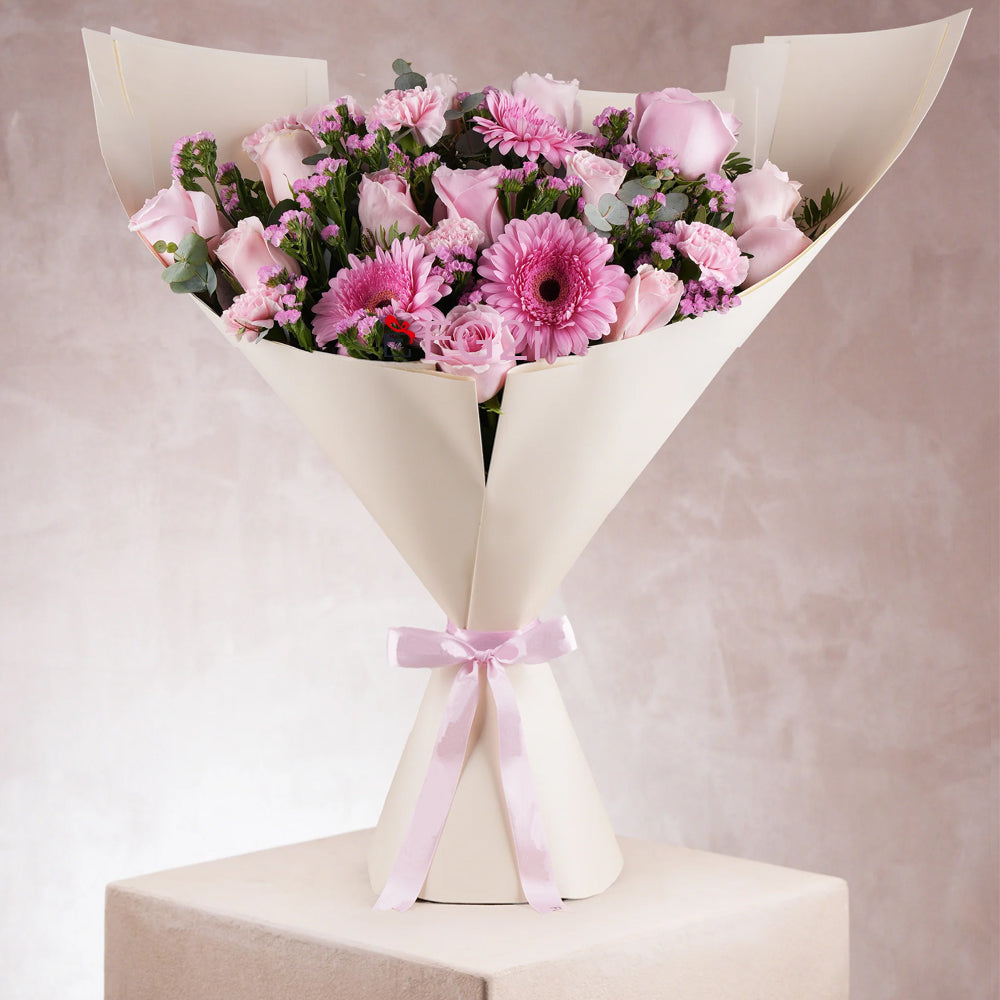 A bouquet combining roses and gerbera daisies is a vibrant and elegant choice, perfect for expressing love, joy, and admiration.Send This Execlusive Bouquet anywhere in India for his/her birthday, anniversary, Valentines, mothers day or any other occassions.