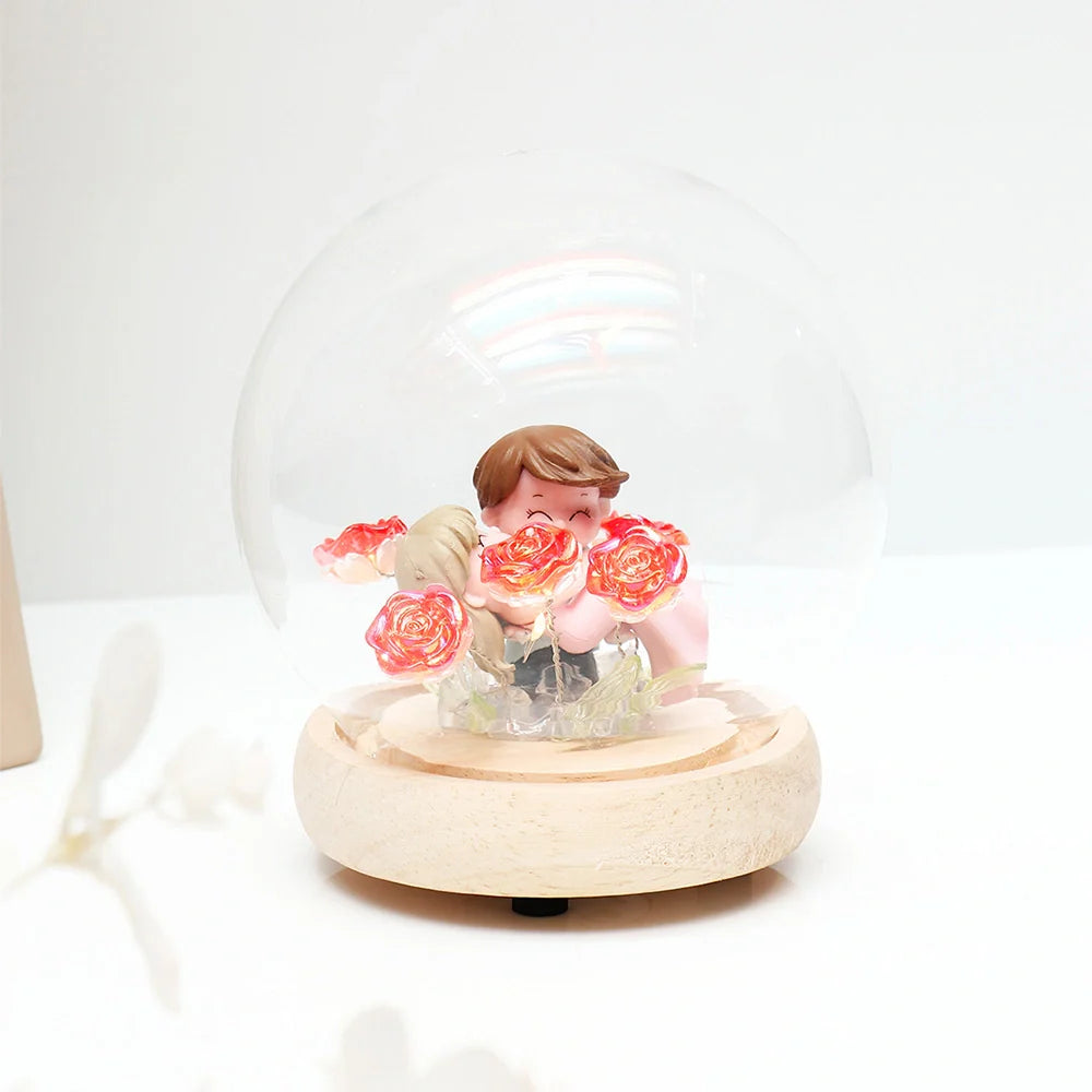 • Premium Glass Dome Displays - Some variants include elegant glass domes with wooden bases that protect and showcase a couple of figurines with preserved flowers, combining classic beauty with modern design for unique Valentine's gifts and special gifts for girlfriend or special gifts for wife presentations.