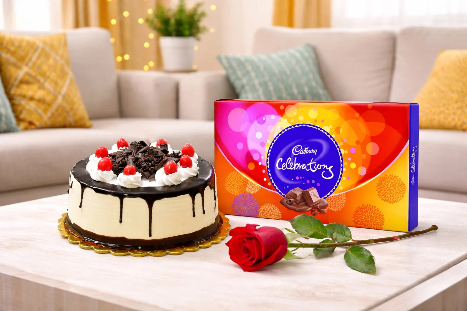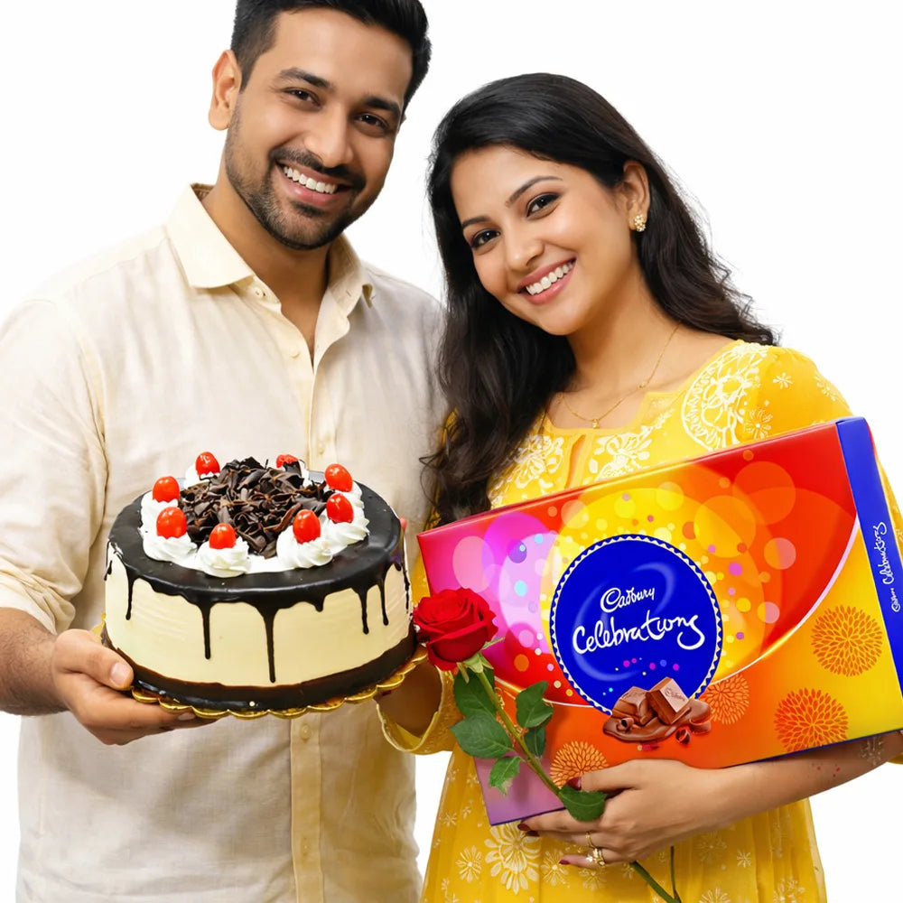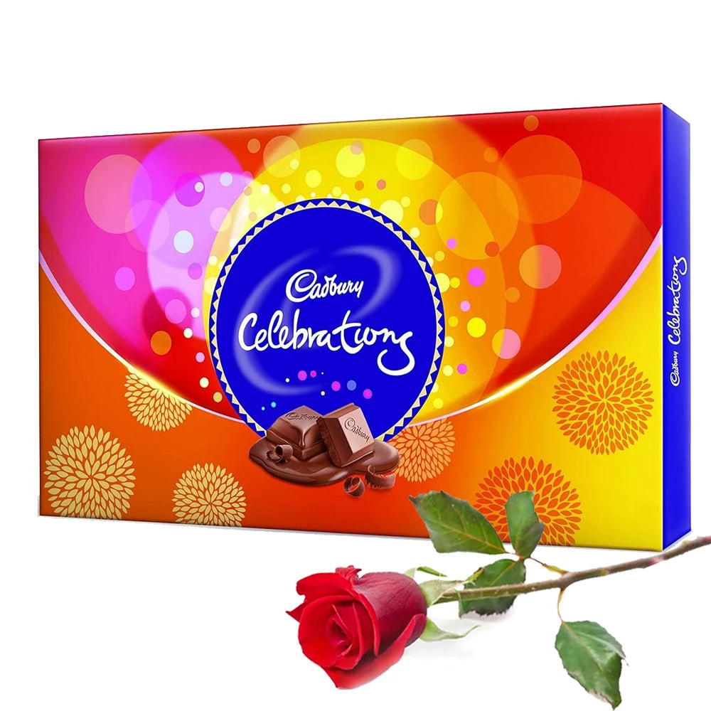 Single Rose and Cake and chocolates.