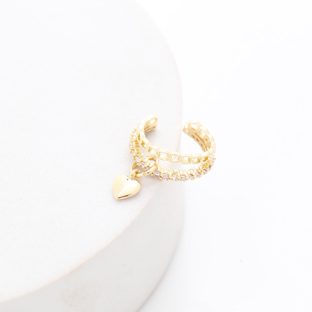 Golden Heart Drop Rinestone Earcuffs