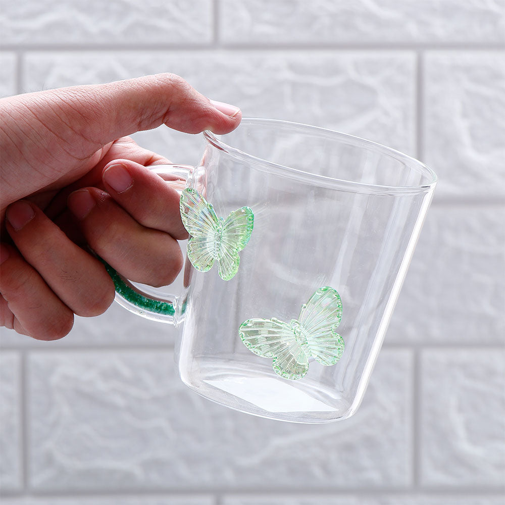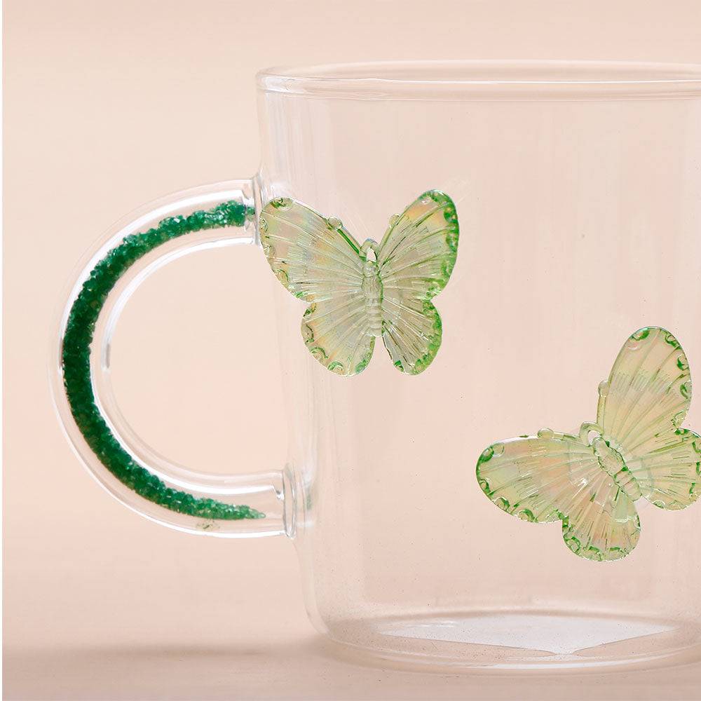 Add a touch of magic to your beverage with the Butterfly Charm Glass Mug. Featuring a delicate butterfly accent and transparent design, it is as beautiful as it is functional.