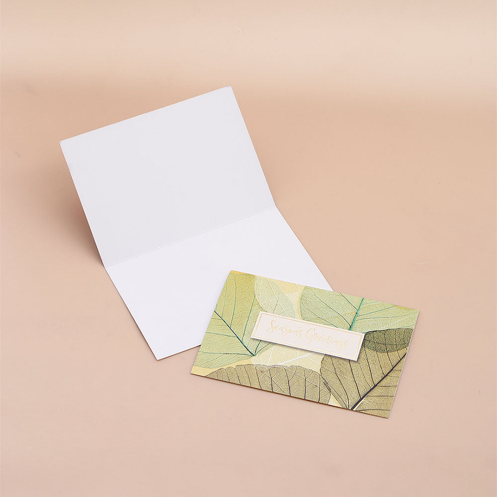 Pack Of 10 Green Leaves Seasons Greeting Card