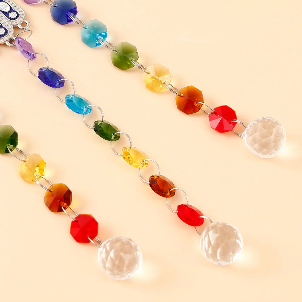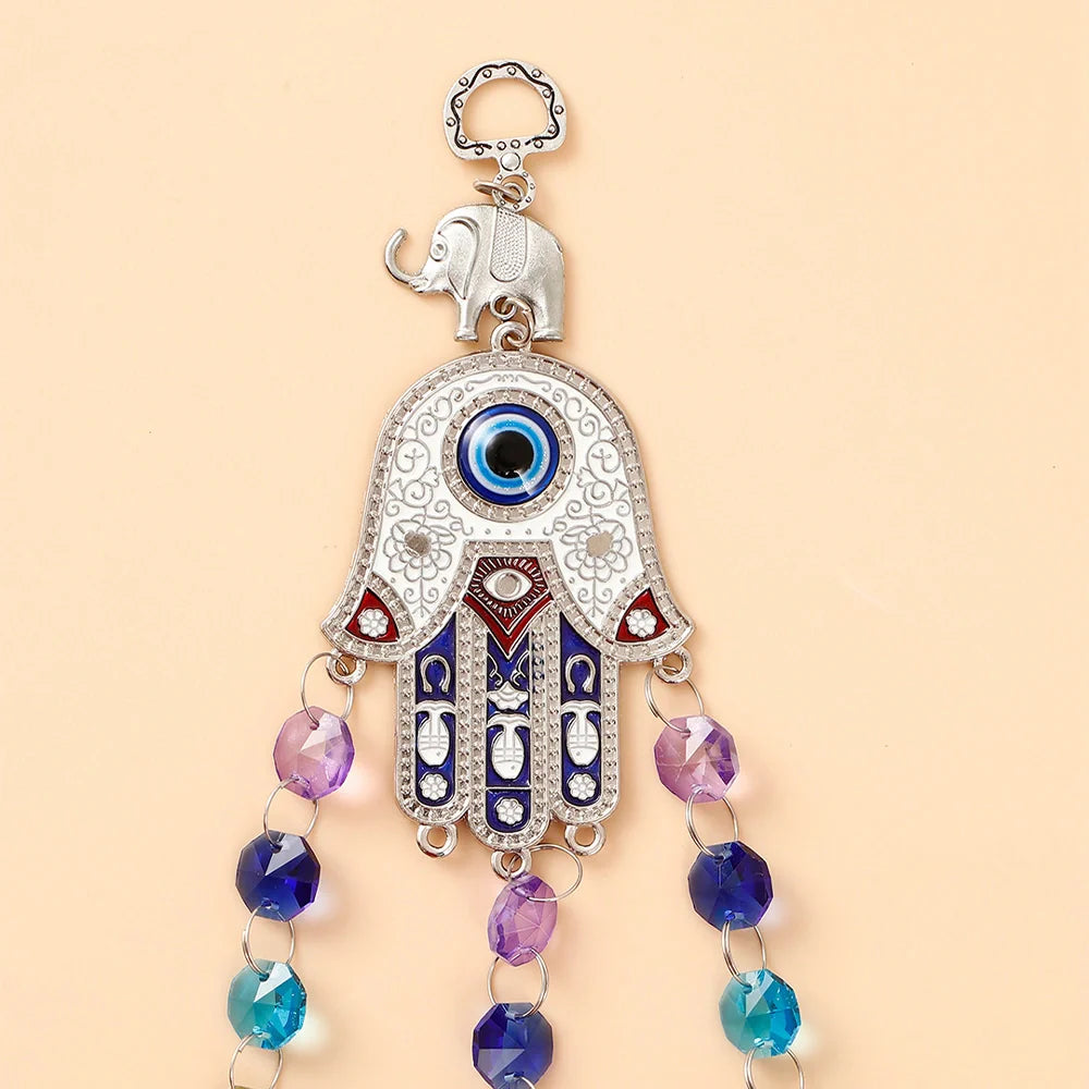 Add elegance, positivity, and protective charm to your space with our beautifully crafted Evil Eye Wall Hanging Collection. Designed with intricate metal motifs and Resin such as sun, moon, elephant, owl, and spiritual symbols, each piece features traditional evil eye accents combined with vibrant crystal drops that reflect light beautifully. These decorative hangings are inspired by the ancient Nazar belief, symbolizing protection from negative energy while enhancing the aesthetic appeal of your home. Perfect for entrances, living rooms, balconies, offices, or gifting, these wall hangings blend spiritual meaning with modern decorative style.