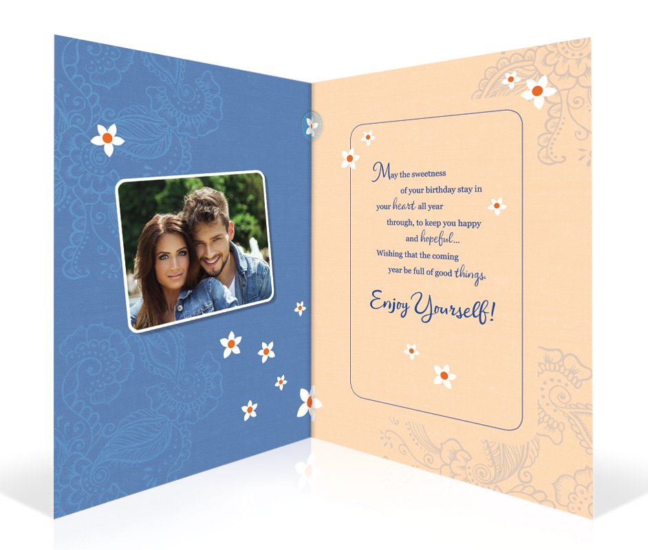 Gift this one of the most beautiful and amazing Birthday card to your loved ones and make them smile and feel special on their Birthday. This card also has one fascinating and outstanding quote written inside " Your Birthday is a sweet reminder of the special moment when a fabulous person stepped onto this world. Have An Amazing Time".