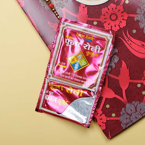 • Neat packaging: Securely holds Rakhi and roli-chawal inside the card.