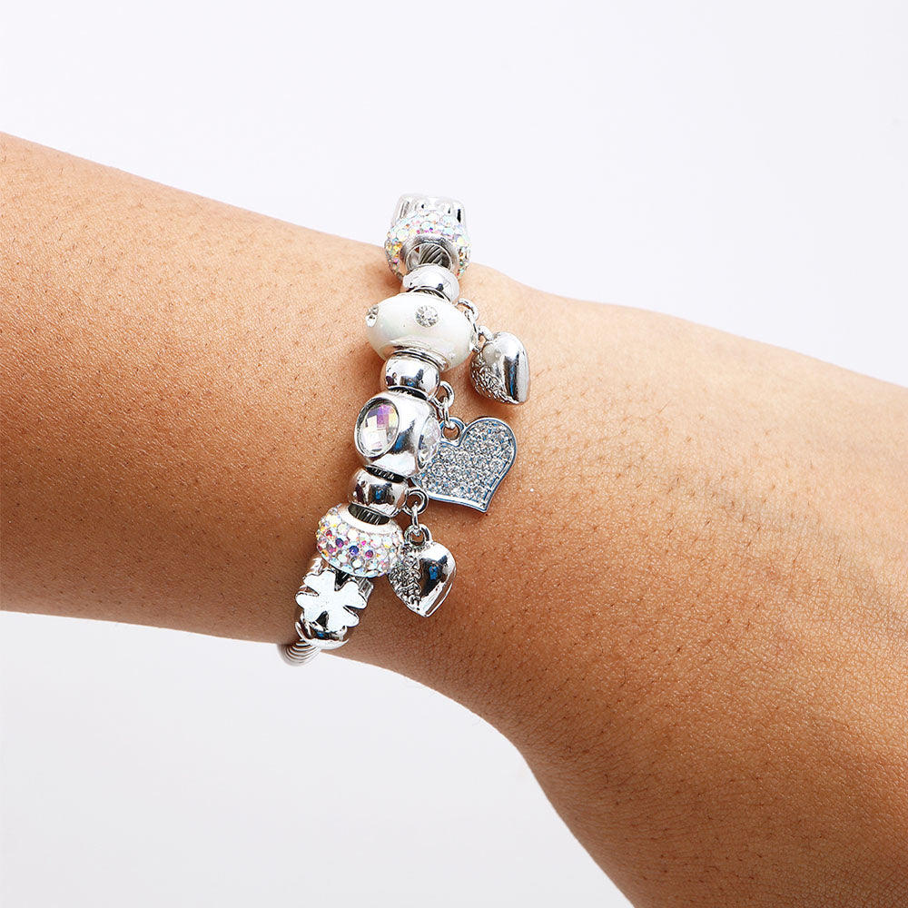 Hearts Charms Silver Bracelet