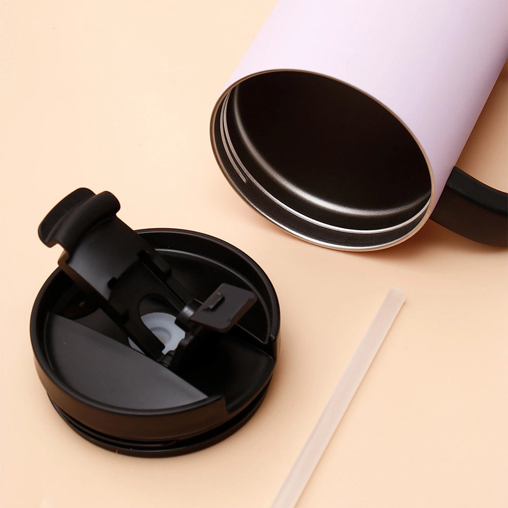 Elevate your beverage experience with this premium insulated travel mug that combines the convenience of a handled mug with the functionality of a straw-lid tumbler. This versatile drinkware features a sturdy handle for comfortable carrying and a secure grip, making it perfect for commuters, travelers, and anyone who enjoys beverages on the move. The double-wall vacuum-insulation technology ensures your coffee stays hot throughout your morning commute, while your iced drinks remain refreshingly cold during afternoon activities. The innovative lid design features a flip-top straw opening for easy sipping and a secure screw-on closure that prevents leaks and spills even if the mug tips over in your bag or car. The generous capacity accommodates your full serving of coffee, tea, smoothies, or any beverage you prefer, while the slim profile fits comfortably in most car cup holders and backpack pockets. The included reusable straw reduces waste and makes drinking easier while driving or multitasking. Whether you're commuting to work, traveling, studying, exercising, or simply enjoying your favorite drink at home, this insulated travel mug keeps beverages at the perfect temperature. At the same time, the comfortable handle and practical straw make every sip effortless.