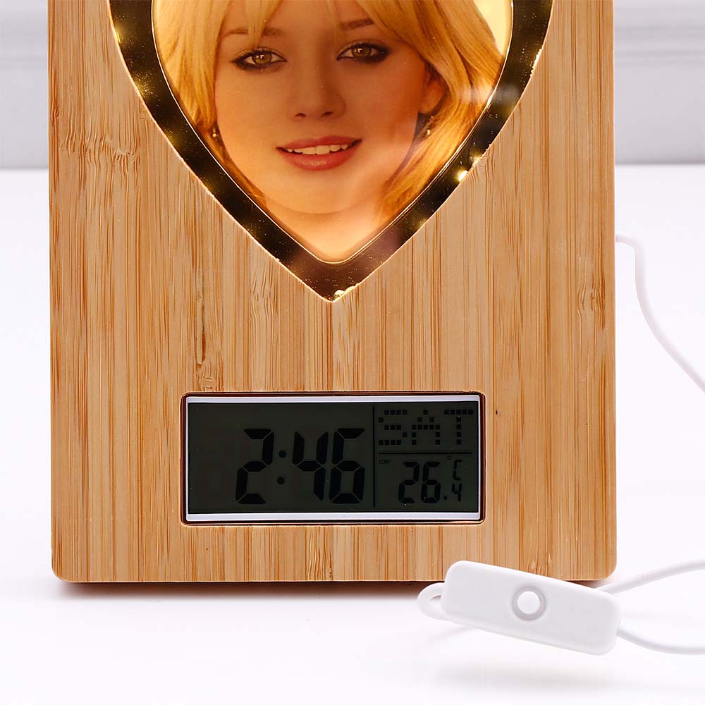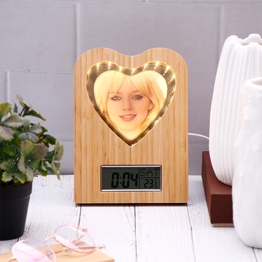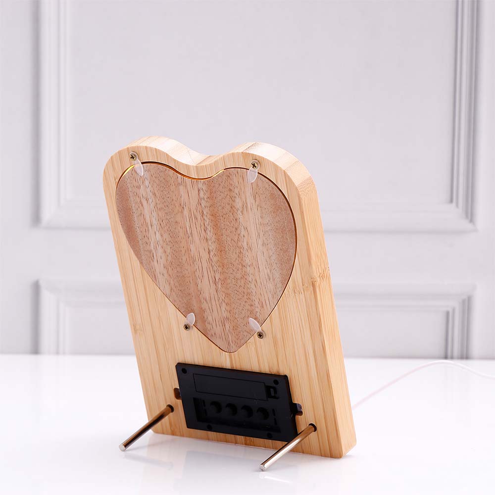 LED Heart Wooden Photo Frame with Clock