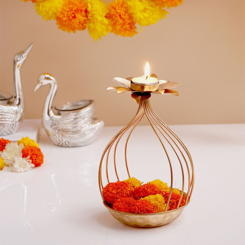 Bring in festive vibes with beautifully crafted diyas, candles, torans, rangoli sets, wall hangings, idols, and other décor essentials. Each piece adds a touch of elegance, light, and positivity to your living spaces during Diwali celebrations.