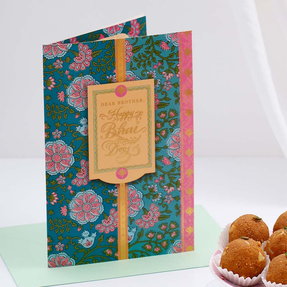 Loving Brother Bhai Dooj Greeting Card with Besan Ladoo