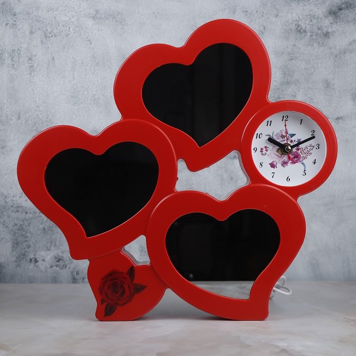 A red and white magic photo frame with a mirror is a unique and decorative item that combines the functionality of a photo frame with the added feature of a mirror.