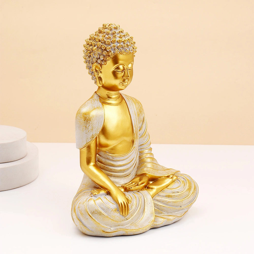 Bring calm, wisdom, and spiritual elegance into any living space with the Gold Meditating Buddha Figurine - a premium decorative showpiece and one of the most unique gift items for home available online. Sculpted in the sacred Dhyana Mudra meditation pose, this majestic figurine features a lustrous metallic gold finish contrasted with antique white distressed robes - creating a striking, temple-inspired statement piece. Whether you're shopping for unique birthday gift ideas for him, anniversary gifts for couples, a housewarming gift, or the best gift for every occasion, this meditating Buddha delivers timeless spiritual beauty. An ideal addition to any festival gifting collection or luxury gift hamper.