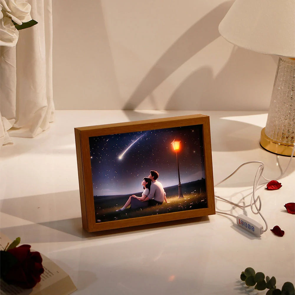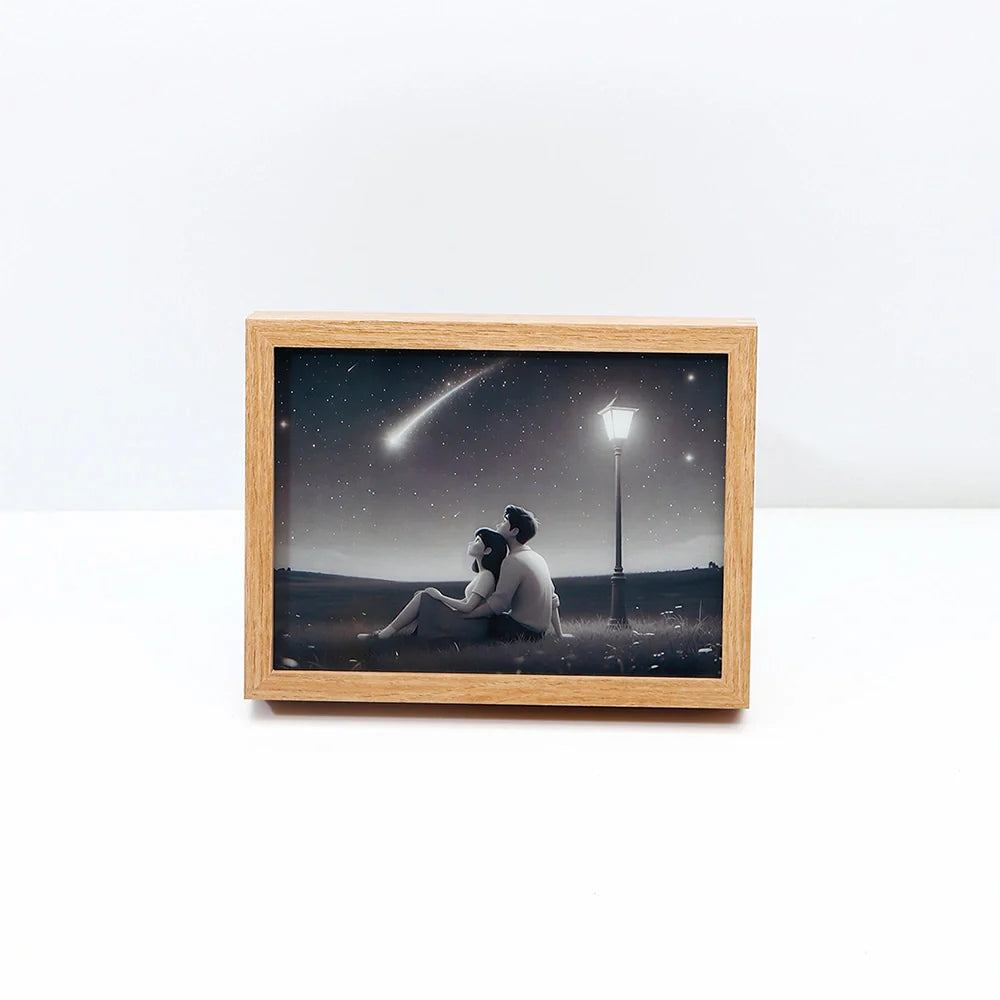 Capture and illuminate your most cherished romantic moments with our stunning LED-illuminated wooden photo frames featuring beautiful couple silhouette artwork under starry skies, making them the perfect Valentine gift for a girlfriend, Valentine gift for a wife, Valentine gift for a boyfriend, or the best Valentine gift for a girlfriend that glows with love. These enchanting shadow box frames showcase dreamy romantic scenes of couples under celestial skies with twinkling stars, glowing street lamps, and magical atmospheres, all beautifully enhanced by built-in LED backlighting that brings the artwork to life. Each frame features a premium solid wood construction with a natural grain finish, built-in LED strip lighting that illuminates the artwork from behind, creating a magical glow effect, USB-powered flexible placement, an easy on/off switch for convenient operation, a protective glass or acrylic front panel, and a tabletop stand for desk or shelf display. The LED lighting creates a warm, romantic ambiance perfect for bedrooms, living rooms, or anywhere you want to showcase your love story.