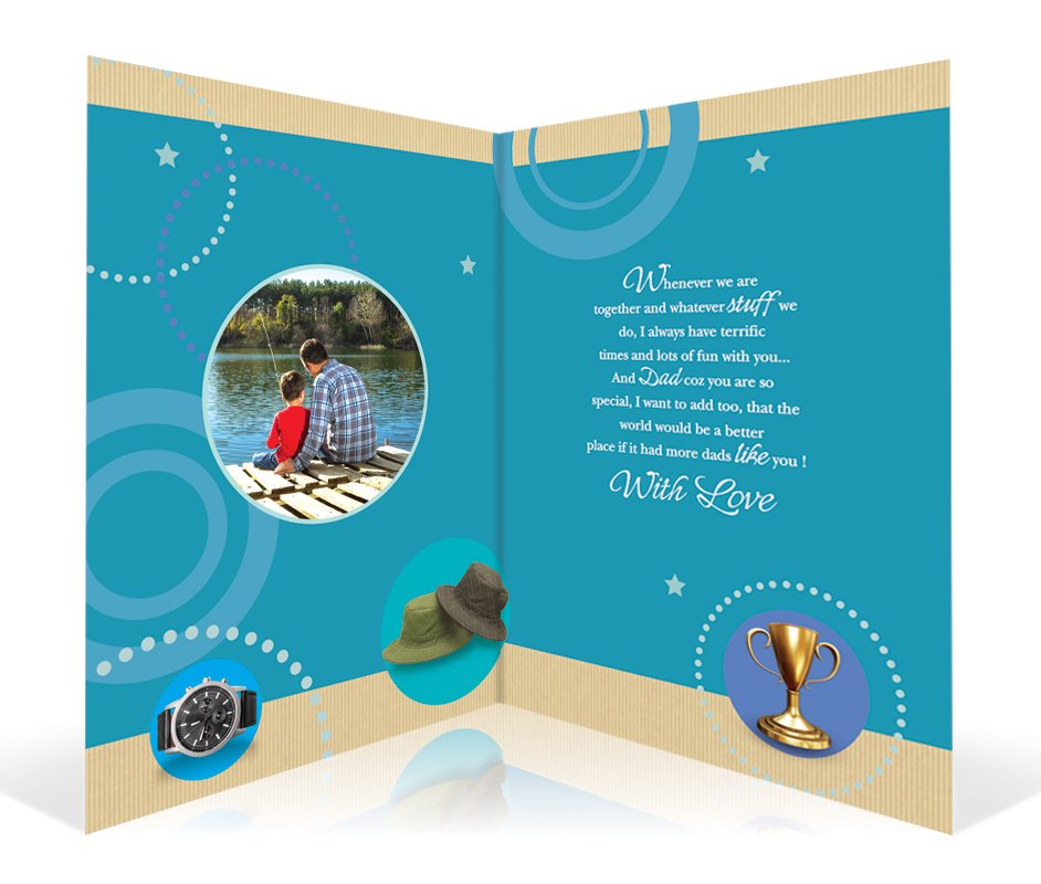 Gift this one of the most beautiful and amazing Father's Day card to your Father and make him smile and feel special. This card also has one fascinating and outstanding quote written inside " You're more than just a good father to me, you are a wonderful friend too-sharing and dependable. Blessed To Have You Dad.