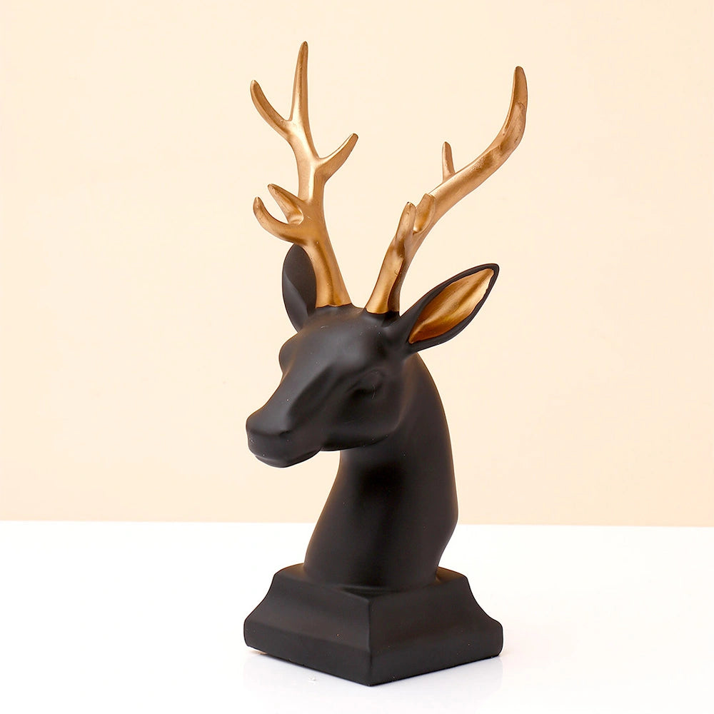 Make a bold and dramatic decor statement with the Archies Noble Buck Deer Head Showpiece - a striking masterpiece that commands attention the moment it enters a room. Finished in a deep, rich matte black and adorned with lustrous golden antlers and ears, this extraordinary sculpture exudes power, luxury, and artistic brilliance. The dark, moody elegance of this piece pairs beautifully with both modern minimalist and richly layered interior styles, making it one of the most versatile and impactful décor accents you can own. Whether placed on a bookshelf, a study desk, or a living room console, the Noble Buck transforms any ordinary space into a curated, gallery-inspired environment. A truly magnificent gift for those with a discerning eye for beauty and design.