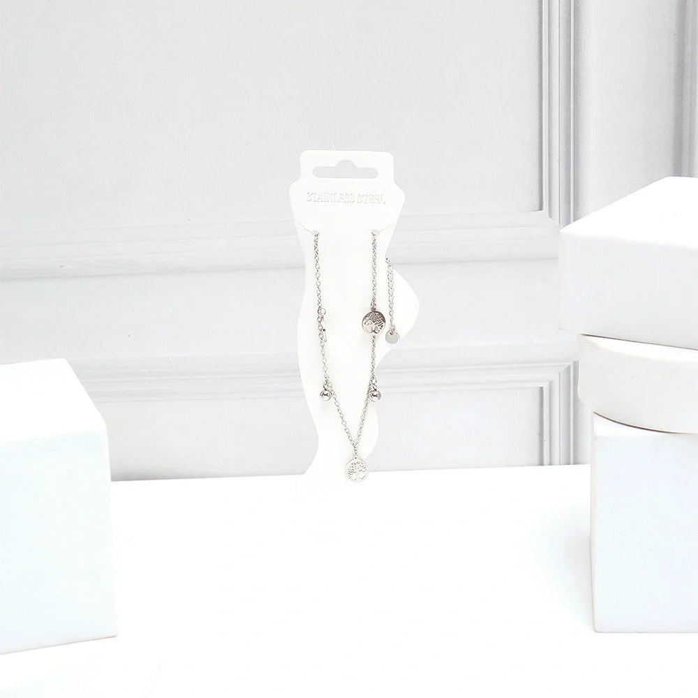 Add a touch of elegance to your ankle with our delicate charm anklets featuring adorable charms and polished beads, the perfect Valentine's gift for a girlfriend or Valentine's gift for a wife who loves dainty, feminine jewelry. These beautiful anklets showcase a fine chain adorned with multiple dangling charms, including open heart outlines, solid heart charms, and polished spherical beads, creating a playful yet sophisticated look. Each anklet features an adjustable chain with an extension and a secure clasp closure, ensuring the perfect fit for any ankle size. Available in a lustrous silver-tone finish, these versatile pieces complement any outfit from casual beachwear to elegant evening attire. The lightweight design ensures comfortable all-day wear whether you're at the beach, attending a summer wedding, or simply adding a feminine touch to your everyday style.