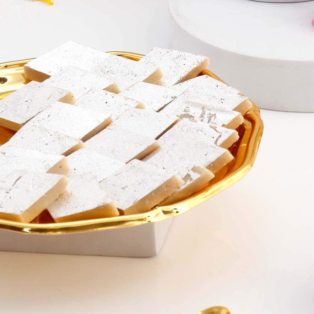 Celebrate the Festival of Lights with our sacred Om & Swastik Diya Gift Set, a divine combination of two powerful Hindu symbols paired with delicious Indian mithai. This spiritually significant gift features beautifully crafted diyas adorned with Om (the universal sound) and Swastik (the symbol of good fortune), along with an assortment of authentic traditional sweets, making it an ideal gift for Diwali, religious ceremonies, and auspicious occasions.