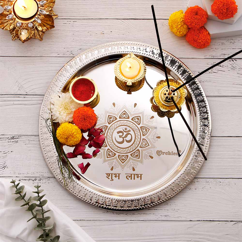 Om Shubh Laabh Silver Pooja Thali Set