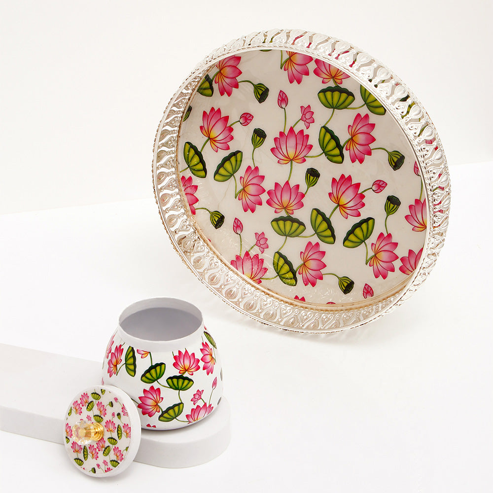 Pink and White Motifs Jars with Tray Set