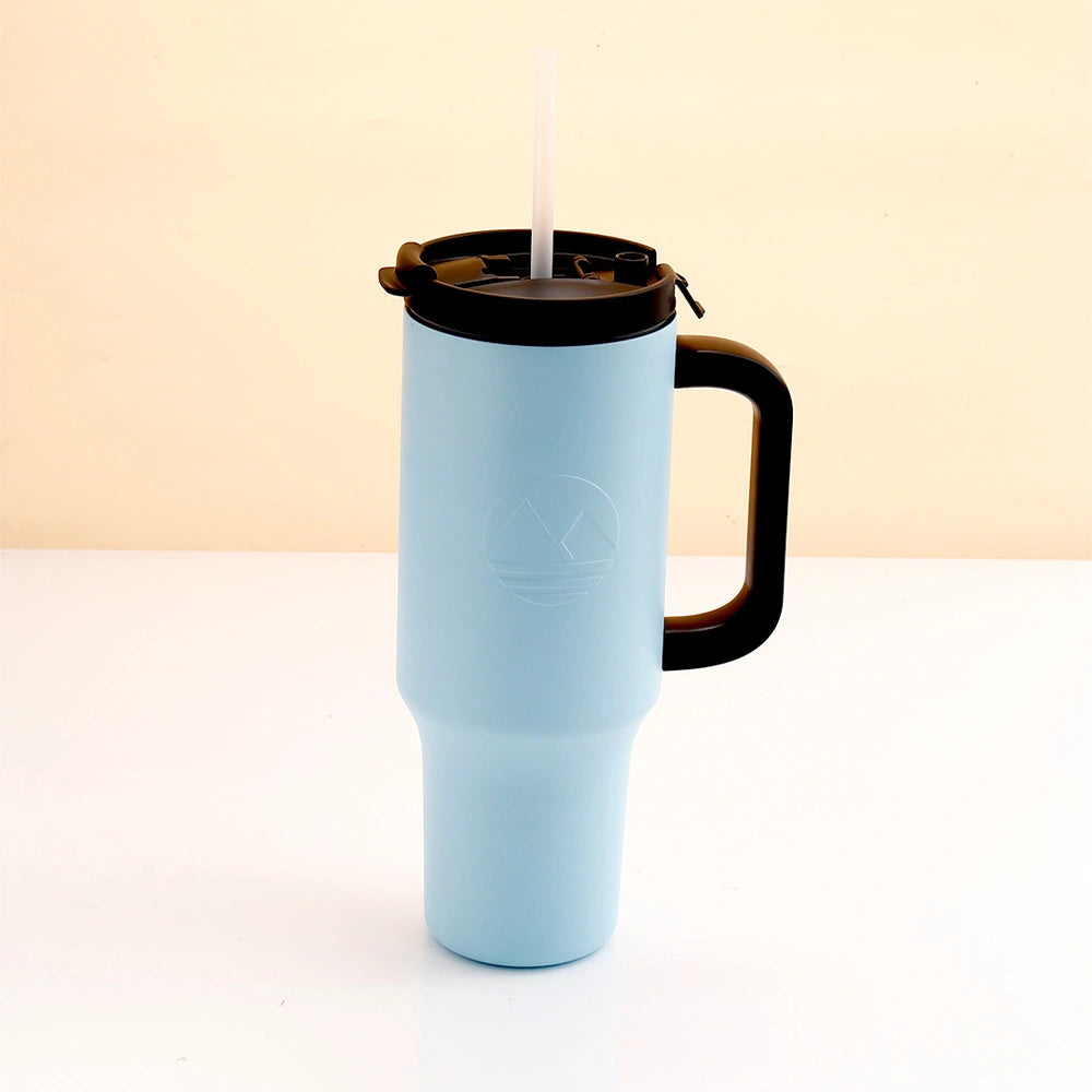 Elevate your beverage experience with this premium insulated travel mug that combines the convenience of a handled mug with the functionality of a straw-lid tumbler. This versatile drinkware features a sturdy handle for comfortable carrying and a secure grip, making it perfect for commuters, travelers, and anyone who enjoys beverages on the move. The double-wall vacuum-insulation technology ensures your coffee stays hot throughout your morning commute, while your iced drinks remain refreshingly cold during afternoon activities. The innovative lid design features a flip-top straw opening for easy sipping and a secure screw-on closure that prevents leaks and spills even if the mug tips over in your bag or car. The generous capacity accommodates your full serving of coffee, tea, smoothies, or any beverage you prefer, while the slim profile fits comfortably in most car cup holders and backpack pockets. The included reusable straw reduces waste and makes drinking easier while driving or multitasking. Whether you're commuting to work, traveling, studying, exercising, or simply enjoying your favorite drink at home, this insulated travel mug keeps beverages at the perfect temperature. At the same time, the comfortable handle and practical straw make every sip effortless.