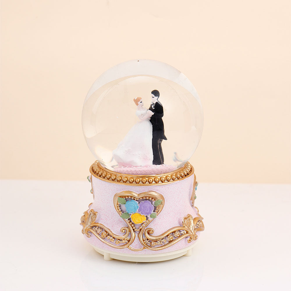 • Beautifully crafted Couple figurines with swirling glitter and snowflakes inside a crystal-clear glass globe.