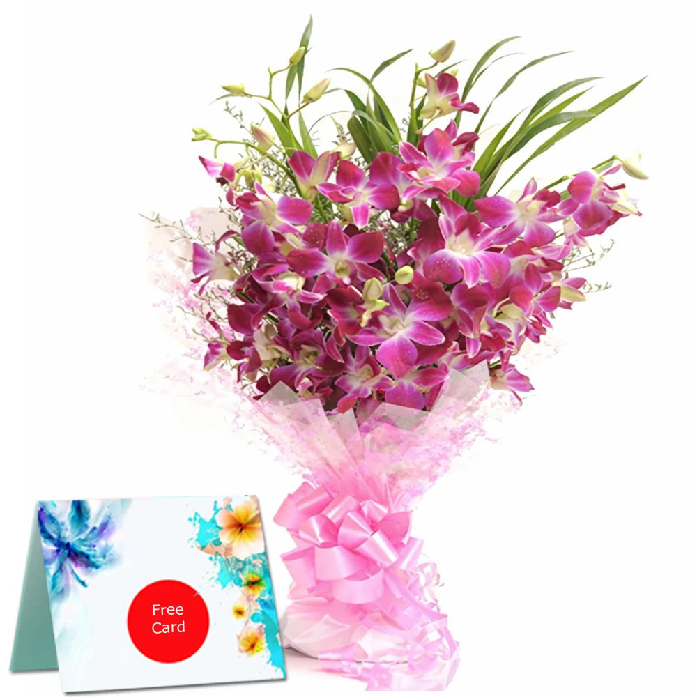 strong>Product Details:: One Side Bouquet of Orchid and Cake. One Side Bouquet of 6pcs Purple Orchid Celophane wrapping Pink Ribbon Bow. 500gm Pineapple Cake. Free... Read More