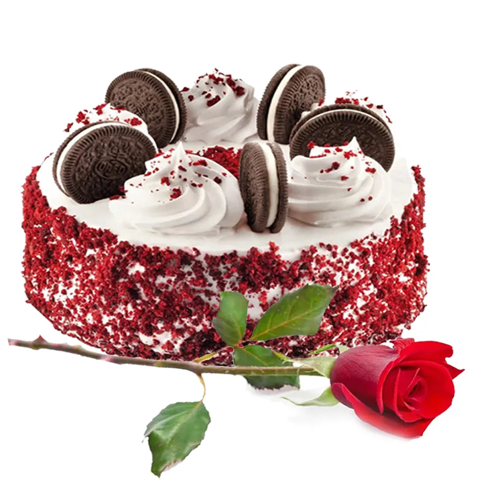 Product Details:: Single Rose and Cake. Single Red Rose. 500gm Red Velvet Oreo Cake. Free Knife. Free On Cake Message. Free Personalised Message Card.(if you... Read More