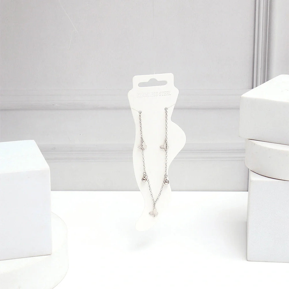 Add a touch of elegance to your ankle with our delicate charm anklets featuring adorable charms and polished beads, the perfect Valentine's gift for a girlfriend or Valentine's gift for a wife who loves dainty, feminine jewelry. These beautiful anklets showcase a fine chain adorned with multiple dangling charms, including open heart outlines, solid heart charms, and polished spherical beads, creating a playful yet sophisticated look. Each anklet features an adjustable chain with an extension and a secure clasp closure, ensuring the perfect fit for any ankle size. Available in a lustrous silver-tone finish, these versatile pieces complement any outfit from casual beachwear to elegant evening attire. The lightweight design ensures comfortable all-day wear whether you're at the beach, attending a summer wedding, or simply adding a feminine touch to your everyday style.