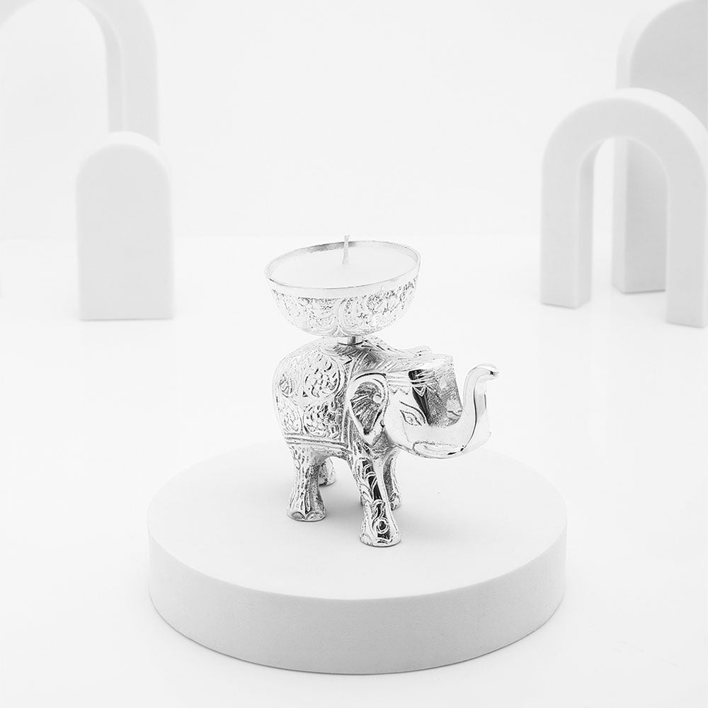 Silver Elephant Candle Holder
