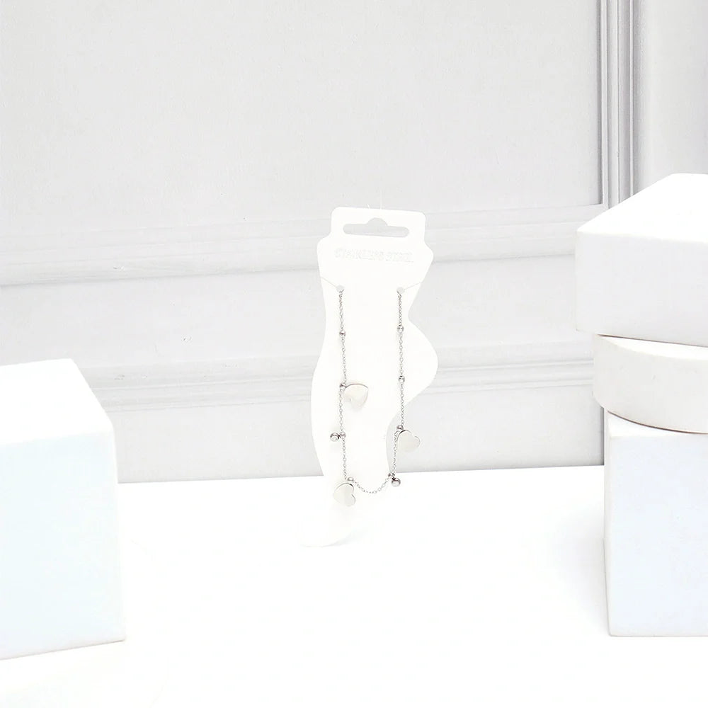 Add a touch of elegance to your ankle with our delicate charm anklets featuring adorable charms and polished beads, the perfect Valentine's gift for a girlfriend or Valentine's gift for a wife who loves dainty, feminine jewelry. These beautiful anklets showcase a fine chain adorned with multiple dangling charms, including open heart outlines, solid heart charms, and polished spherical beads, creating a playful yet sophisticated look. Each anklet features an adjustable chain with an extension and a secure clasp closure, ensuring the perfect fit for any ankle size. Available in a lustrous silver-tone finish, these versatile pieces complement any outfit from casual beachwear to elegant evening attire. The lightweight design ensures comfortable all-day wear whether you're at the beach, attending a summer wedding, or simply adding a feminine touch to your everyday style.