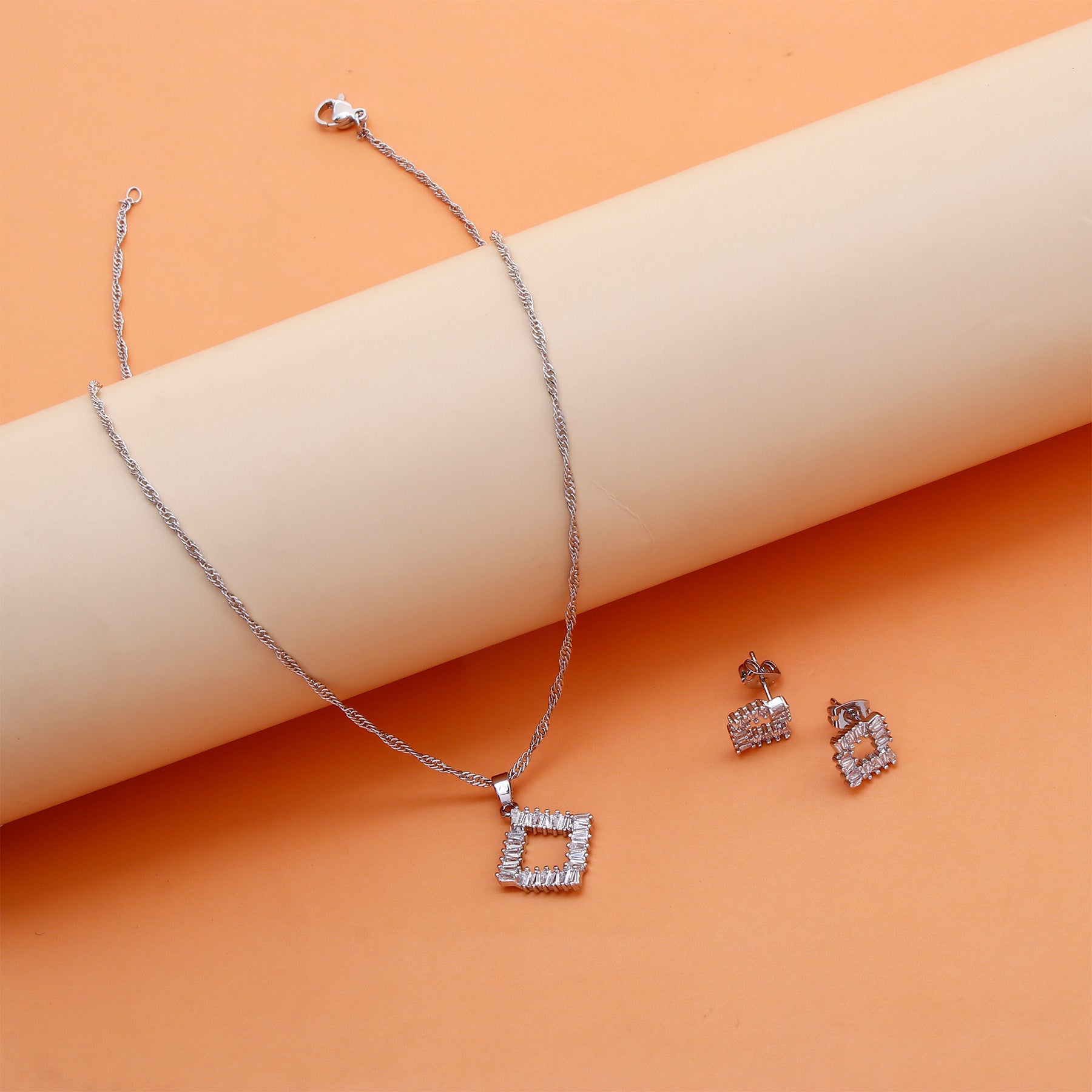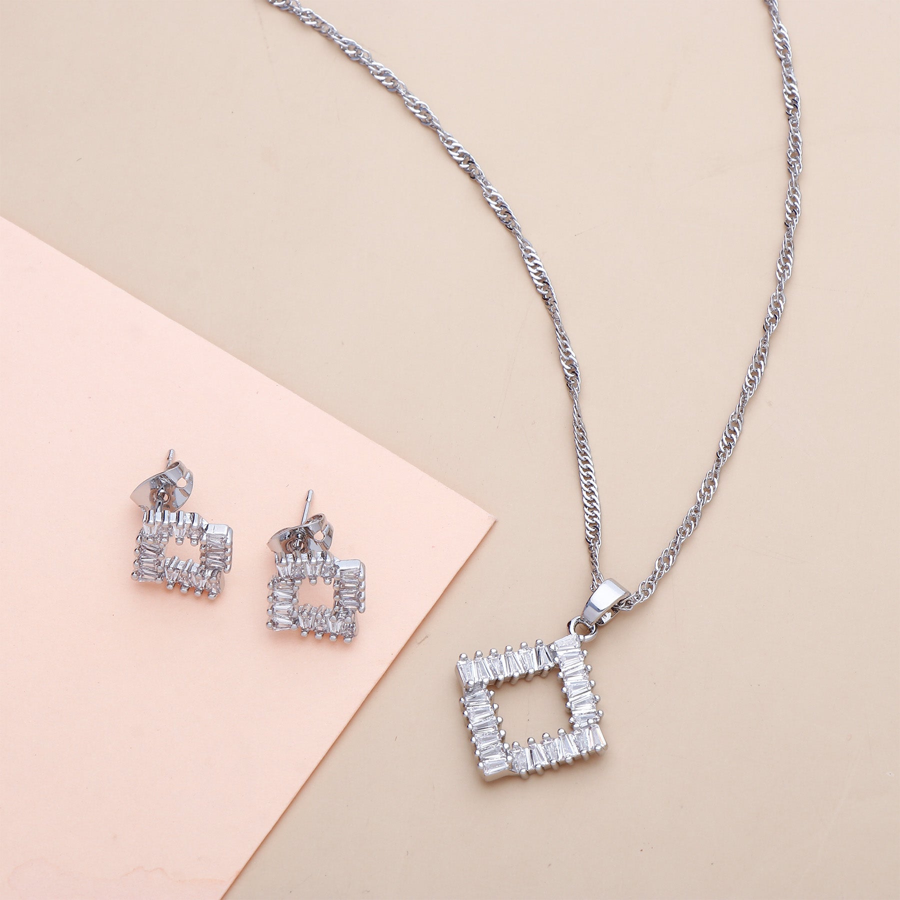 Add a touch of elegance to your lifestyle with this stunning earring and pendant set. Expertly crafted to enhance your everyday look or complement special occasion wear, this set blends classic charm with modern finesse. The intricate design of the pendant is perfectly balanced by matching earrings that sparkle with every movement. Whether it's a gift for someone special or a personal indulgence, this jewellery set is sure to turn heads and capture hearts.