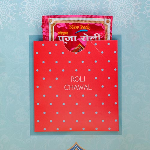 Celebrate the cherished bond between siblings with our exclusive Greeting Card with Rakhi set, thoughtfully curated to make Raksha Bandhan extra special. This amazing set includes a beautifully crafted Rakhi, an elegantly designed greeting card, and traditional roli chawal, ensuring a complete and heartfelt celebration.