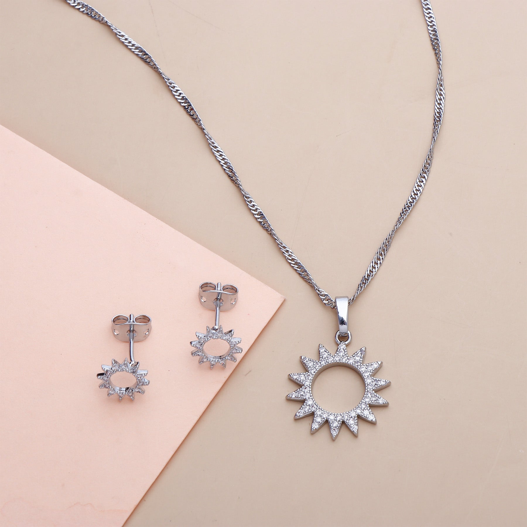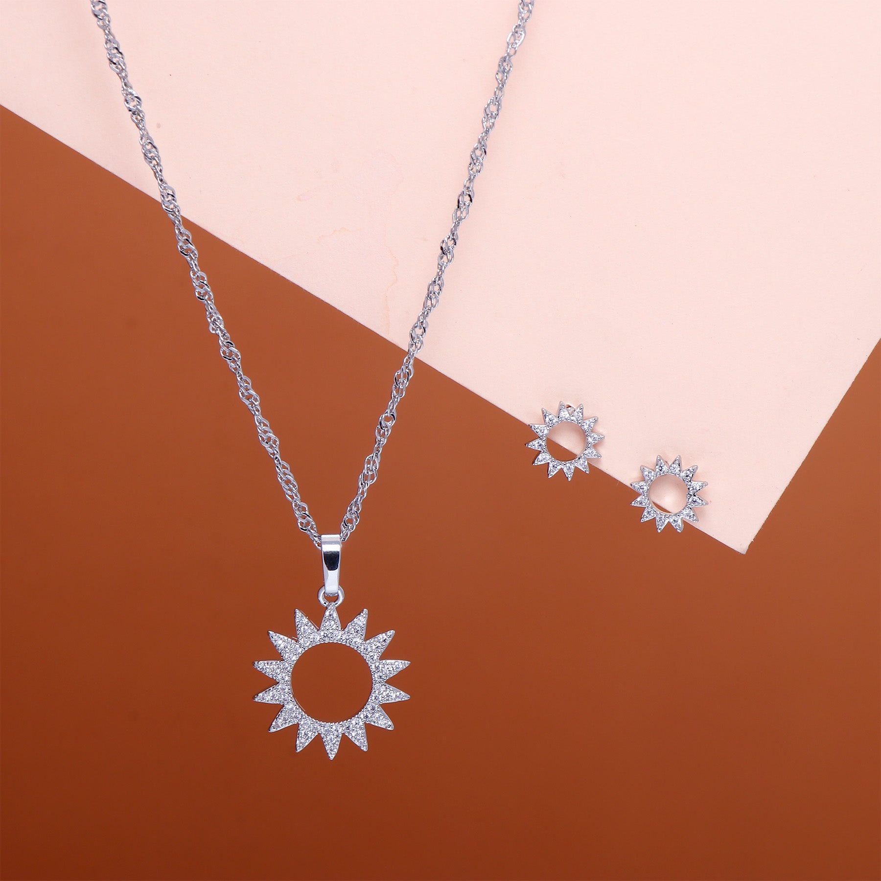 Add a touch of elegance to your lifestyle with this stunning earring and pendant set. Expertly crafted to enhance your everyday look or complement special occasion wear, this set blends classic charm with modern finesse. The intricate design of the pendant is perfectly balanced by matching earrings that sparkle with every movement. Whether it's a gift for someone special or a personal indulgence, this jewellery set is sure to turn heads and capture hearts.