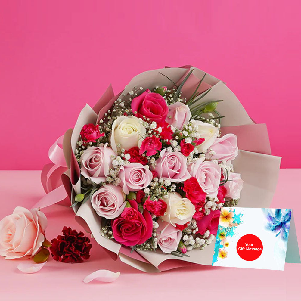 A rose and carnations bouquet is a beautiful and versatile floral arrangement that combines the elegance of roses with the charm and longevity of carnations. It’s suitable for a wide range of occasions, from romantic gestures to celebrations and even heartfelt sympathy. Send This Exclusive Bouquet anywhere in India for his/her birthday, anniversary, Valentine's Day, Mother's Day, or any other occasion.