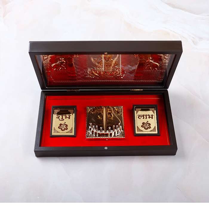 The best showpiece gift set of shri Laxmi in a Golden color that enhance the beauty of your house which blesses and protects your entire family from the negative eyes and shower of blessings also include a pair of Gold toned feet which is the perfect sign of blessings with auspicious one Shubh Laabh.