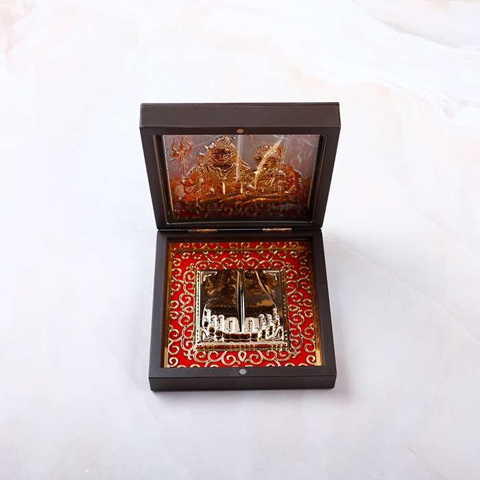 The amazing design of showpiece gift set of Lord Shiva and Parvati in a Golden color that enhance the beauty of your house which blesses and protects your entire family from the negative eyes also include a pair of Gold toned feet which is the perfect sign of blessings of Lord Shiva and Parvati.