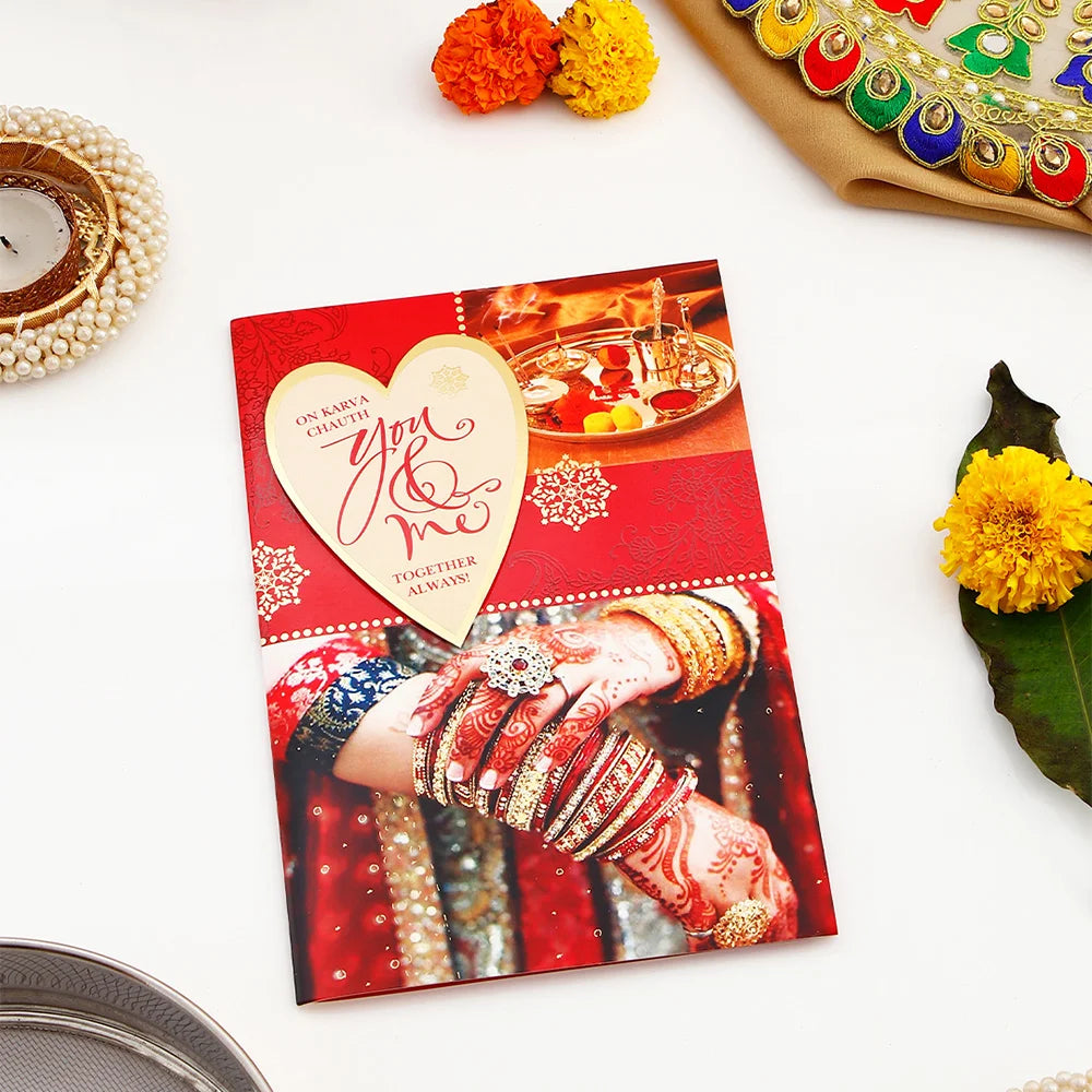 Celebrate the cherished tradition of Karva Chauth with our thoughtfully curated Karva Chauth Gifts, made to express love, appreciation, and togetherness. The greeting cards symbolize the devotion and bond shared between a husband and wife, making it a meaningful way to mark this special occasions. Whether you're looking to surprise your spouse or show gratitude to a loved one observing the fast, this is a perfect combination of tradition and modern elegance.