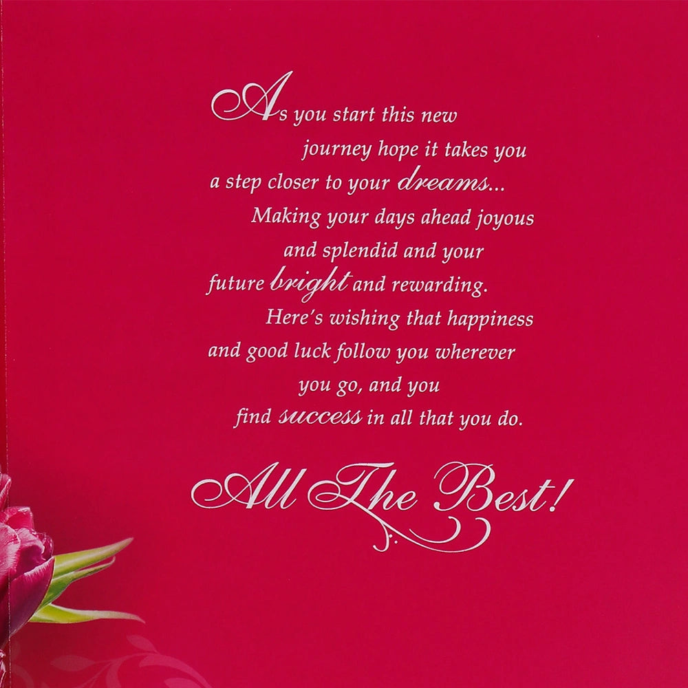 Bid the most heartfelt and meaningful goodbye with this beautifully designed Premium Farewell Greeting Card - a warm and elegant way to express your sincere wishes, cherished memories, and deepest feelings for someone who is moving on to a new and exciting chapter of their life. Whether your colleague is moving to a new job, your friend is relocating to a new city, your teacher is retiring or simply someone dear to you is beginning a new journey - this thoughtfully crafted farewell card is the perfect way to say goodbye with love, warmth, and heartfelt sincerity. Featuring an elegant design with a touching pre-printed farewell message, this card beautifully captures the bittersweet emotion of saying goodbye while celebrating the exciting new beginnings that lie ahead.